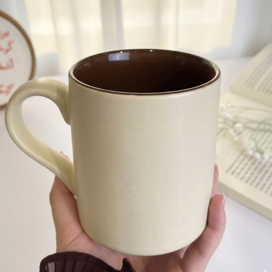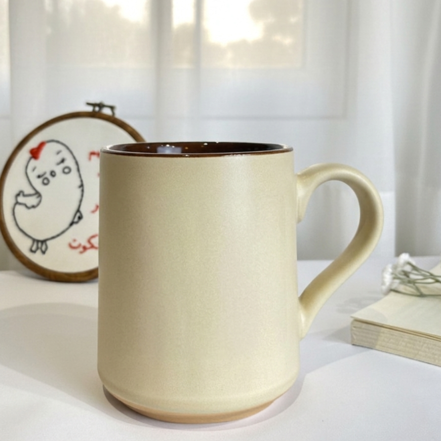 مج حجمه كبير وشكله كلاسيك لونه من برة بيچ ومن جوة بني لمحبي البساطة