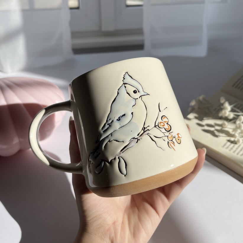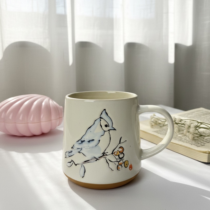 مج لامع وعليه رسمة عصفورة هيبقى بداية جميلة ليومك