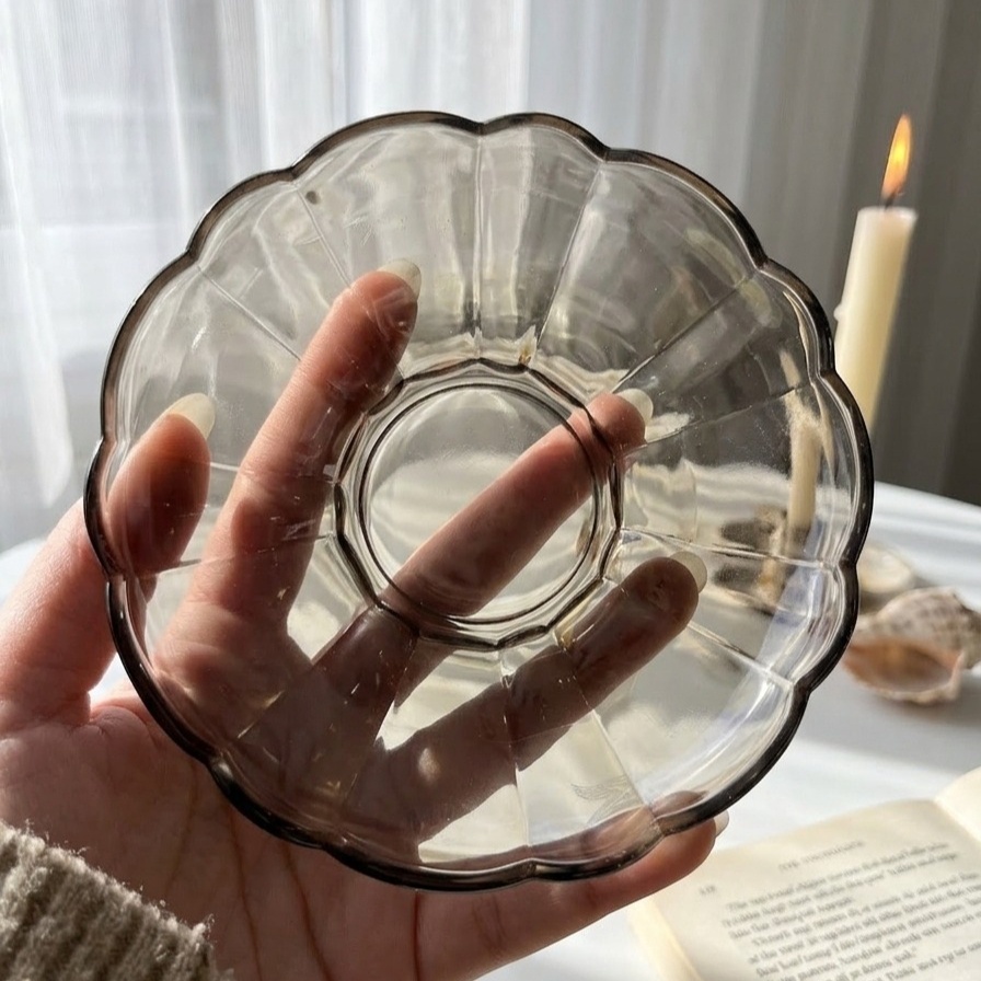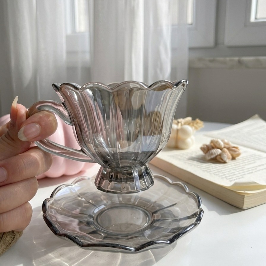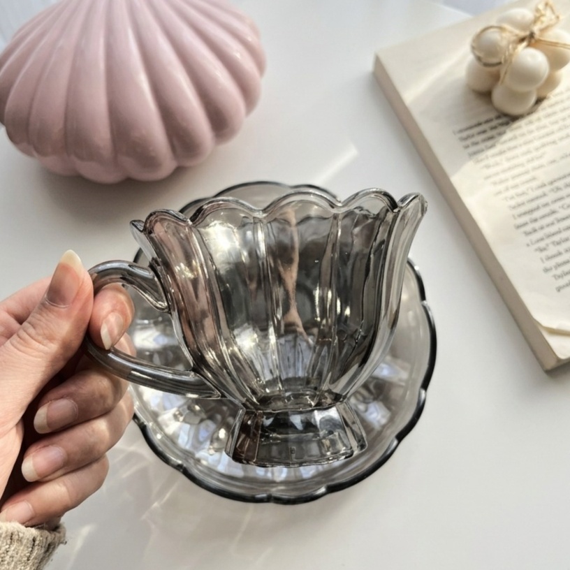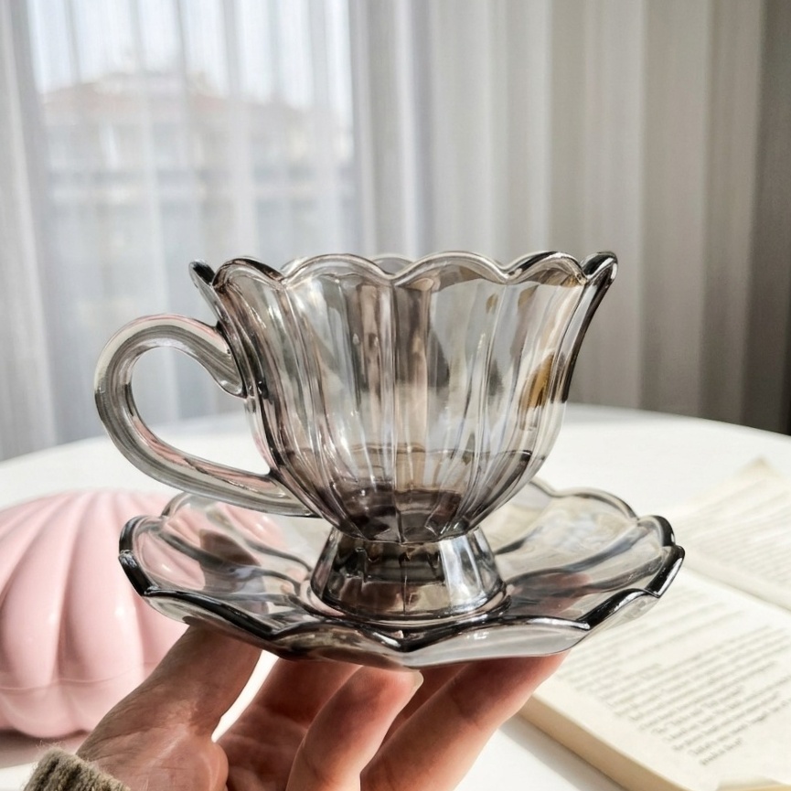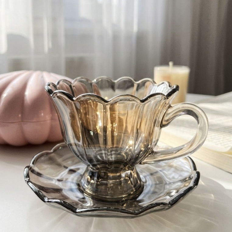 فنجان من الزجاج بلون فاميه مميز حجمه مناسب للشاي أو الچيلي والهوت شوكليت
