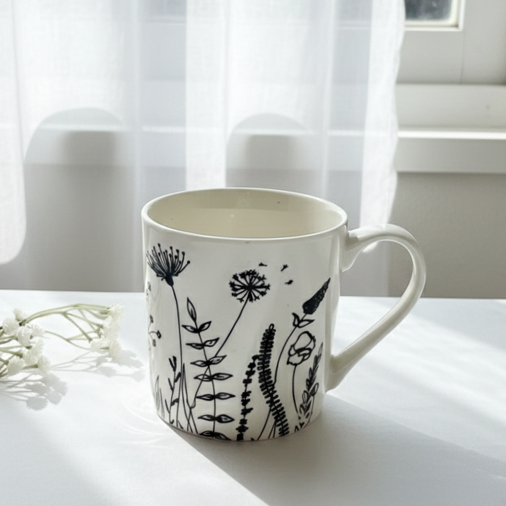 مج لطيف لمحبي الورد عليه رسومات شجر وورود بطول المج