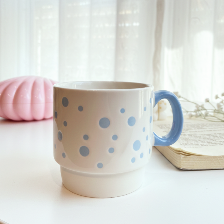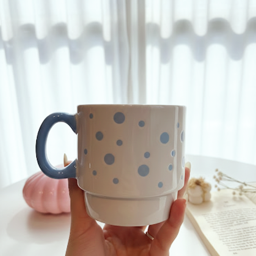 مج بلون أبيض ونقط باللون اللبني شكله أنيق