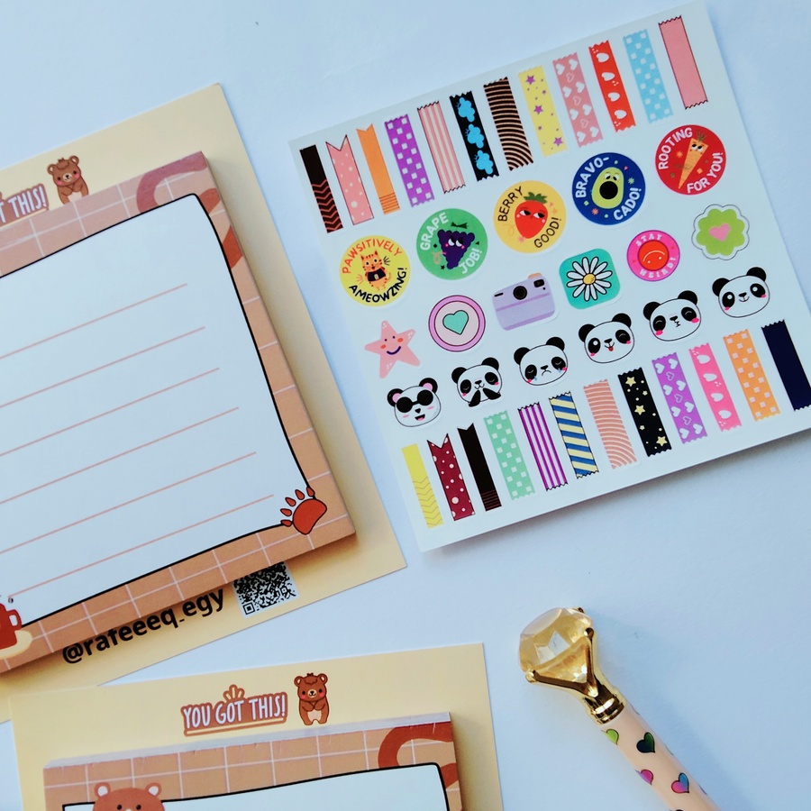 معاها شيت إستيكر فيه ٤١ أستيكر عشان نقدر نلزق بيها الإستيكي نوت