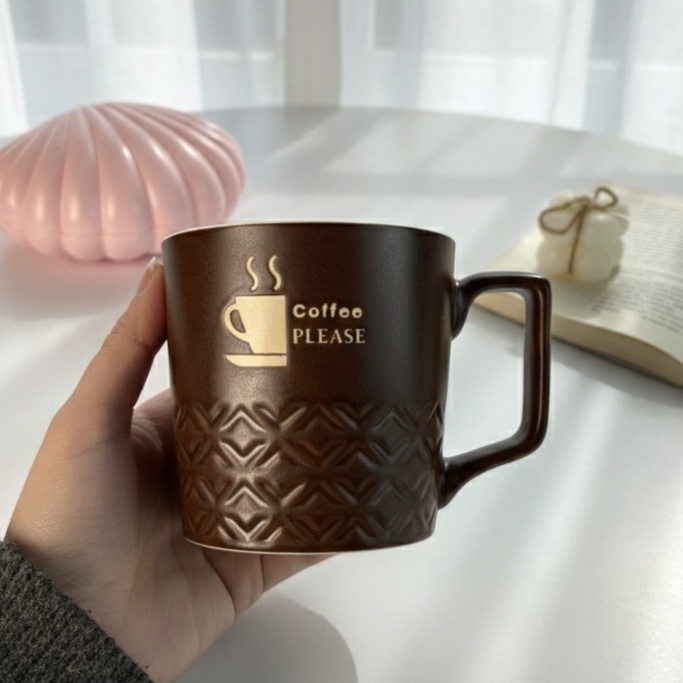 مج بلون بني مميز لمحبي الأشكال الكلاسيك والبسيطة حجمه كبير مناسب للشاي والنيسكافيه