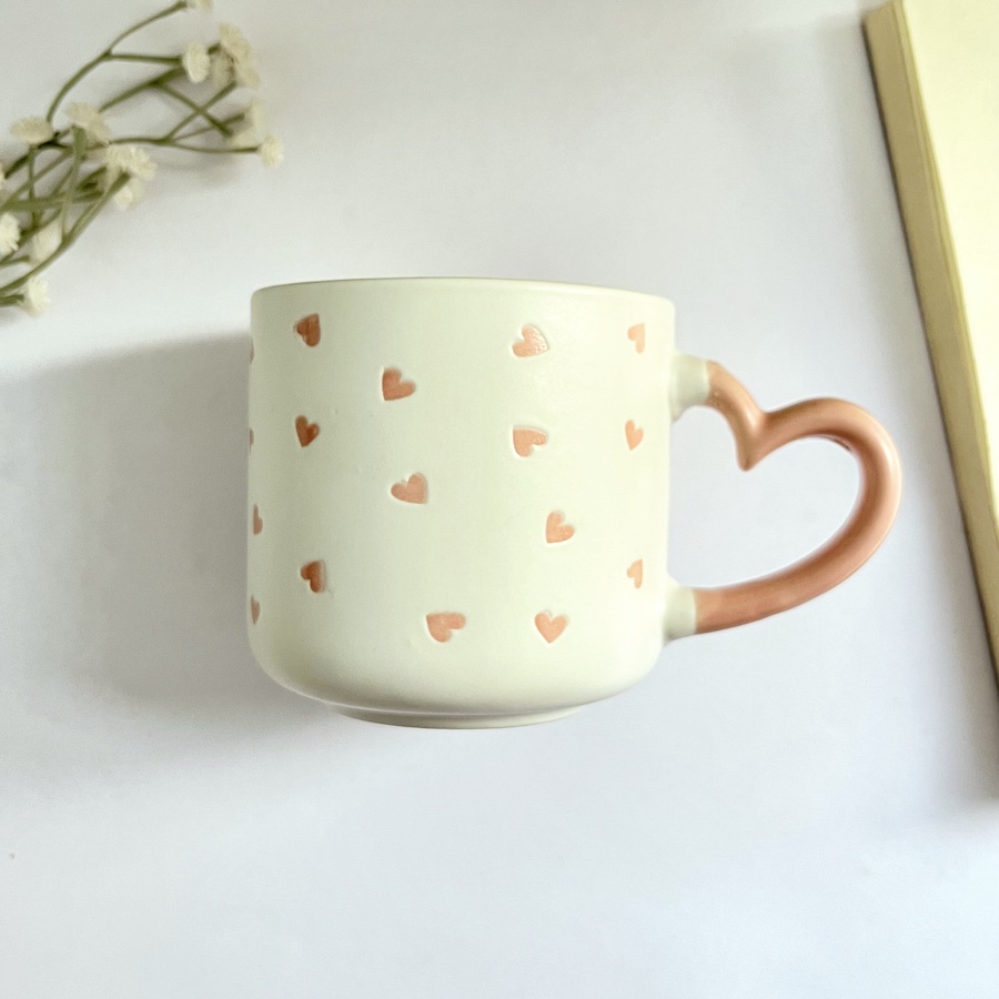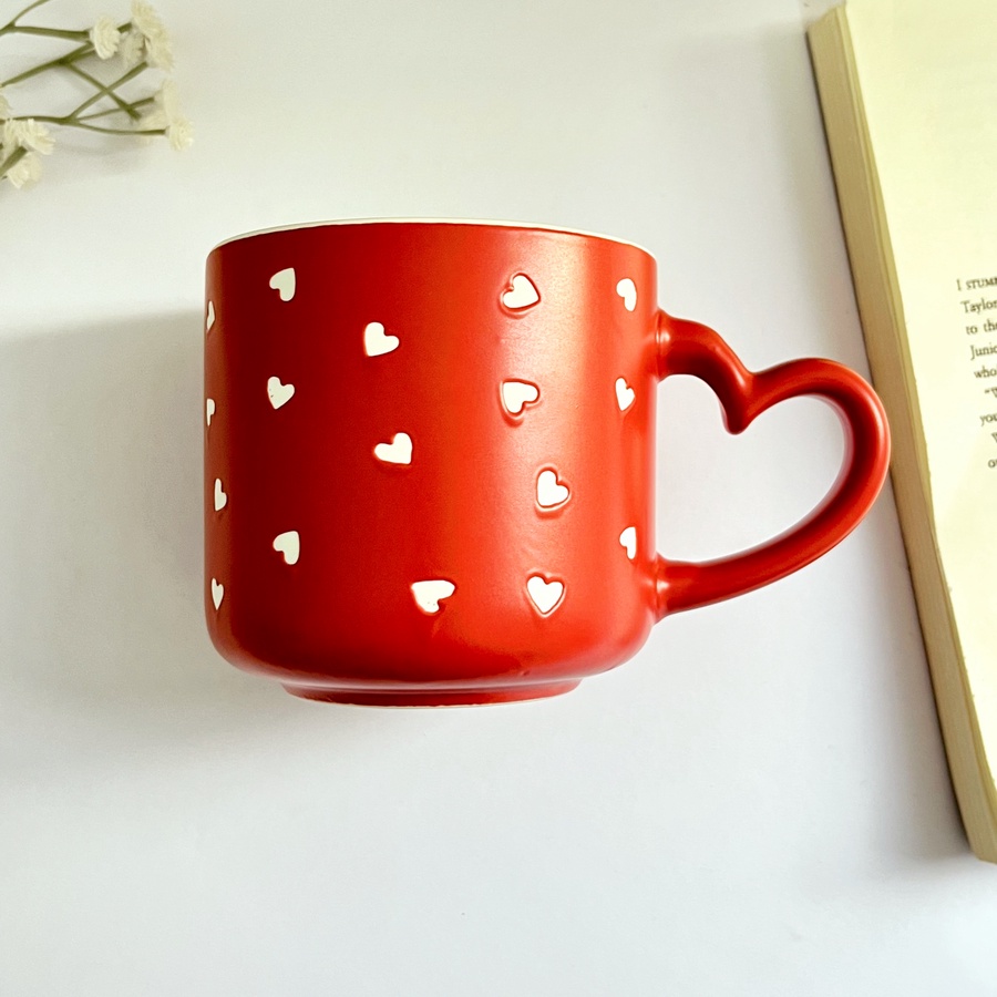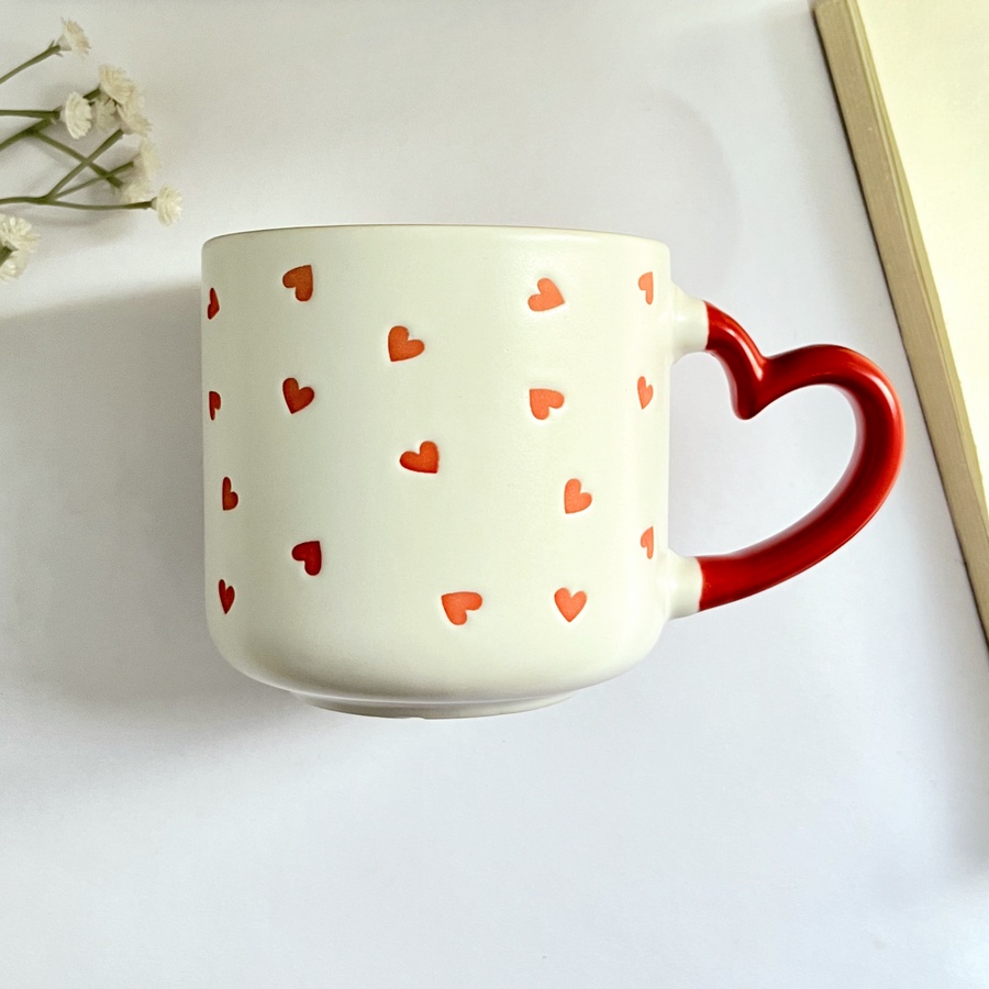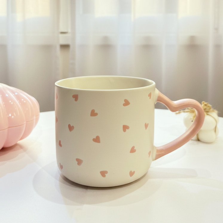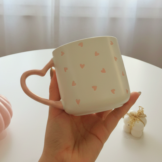 مج كله قلوب صغيرة وإيده على شكل قلب لطيفة جداً