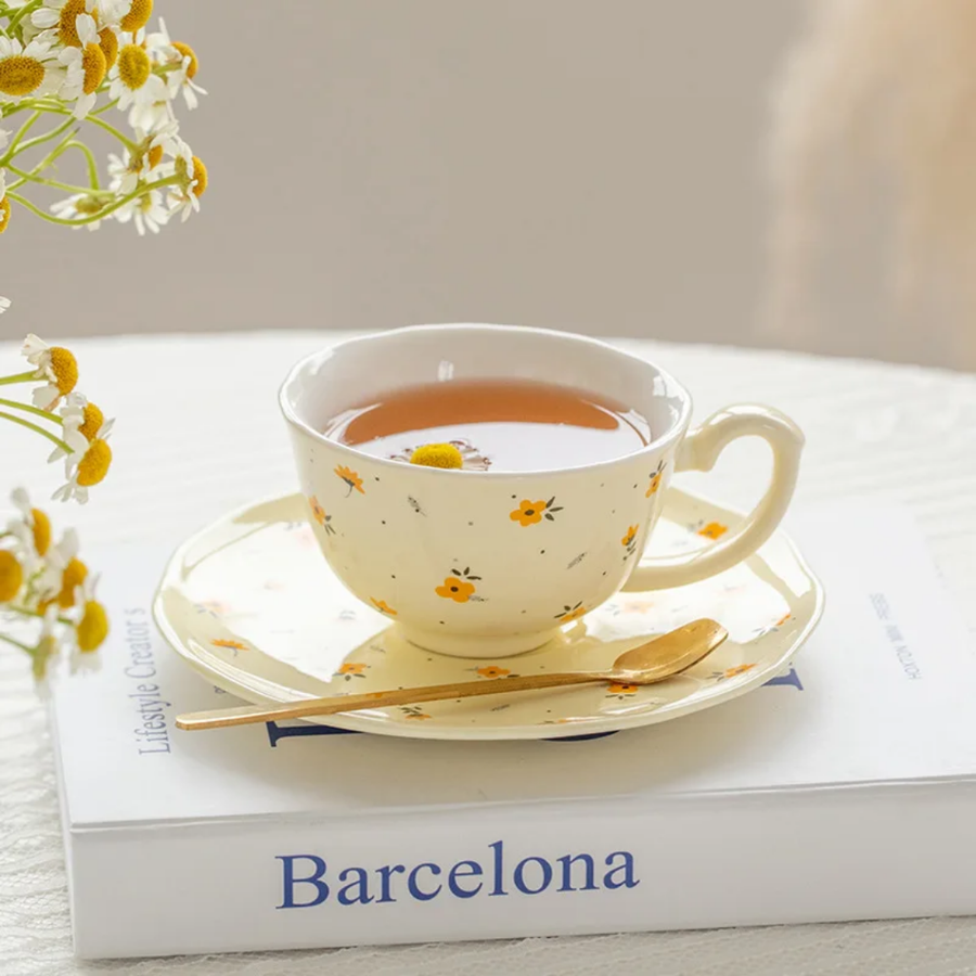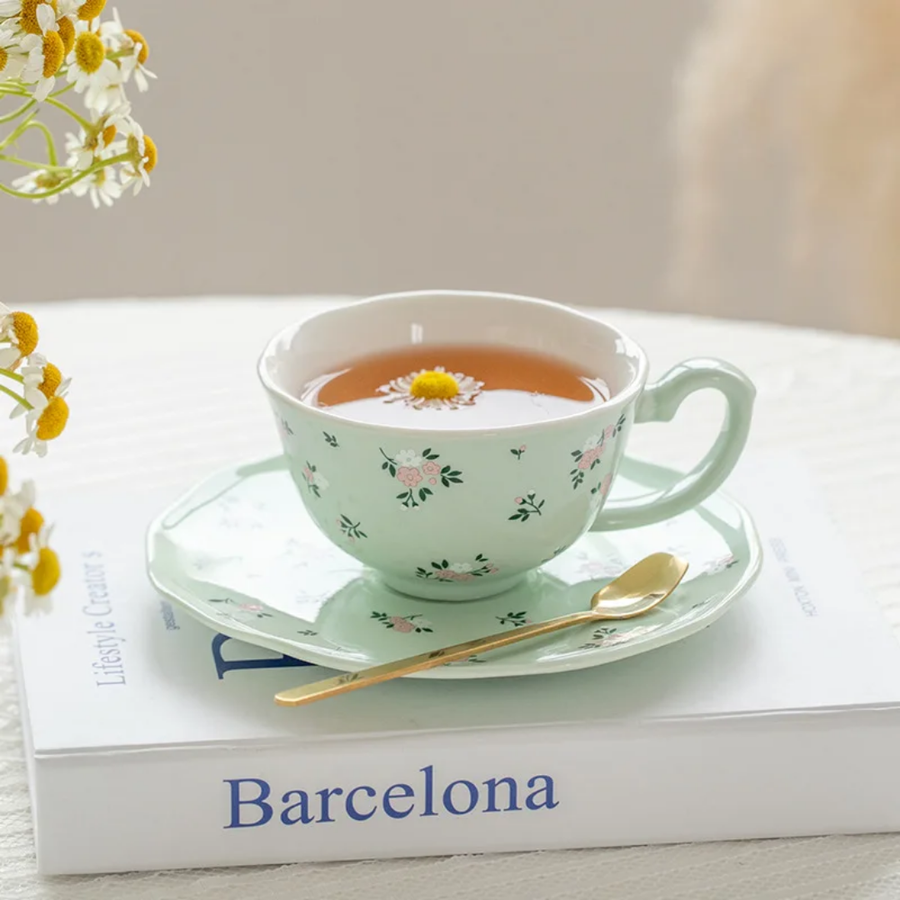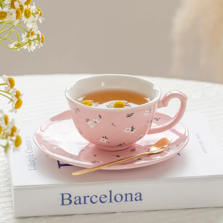 فنجان أنيق برسومات ورد مبهجة