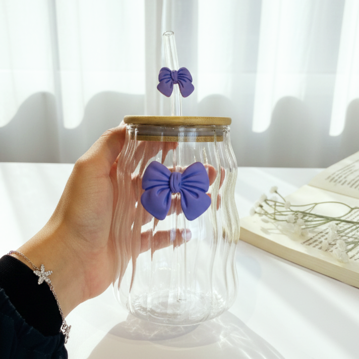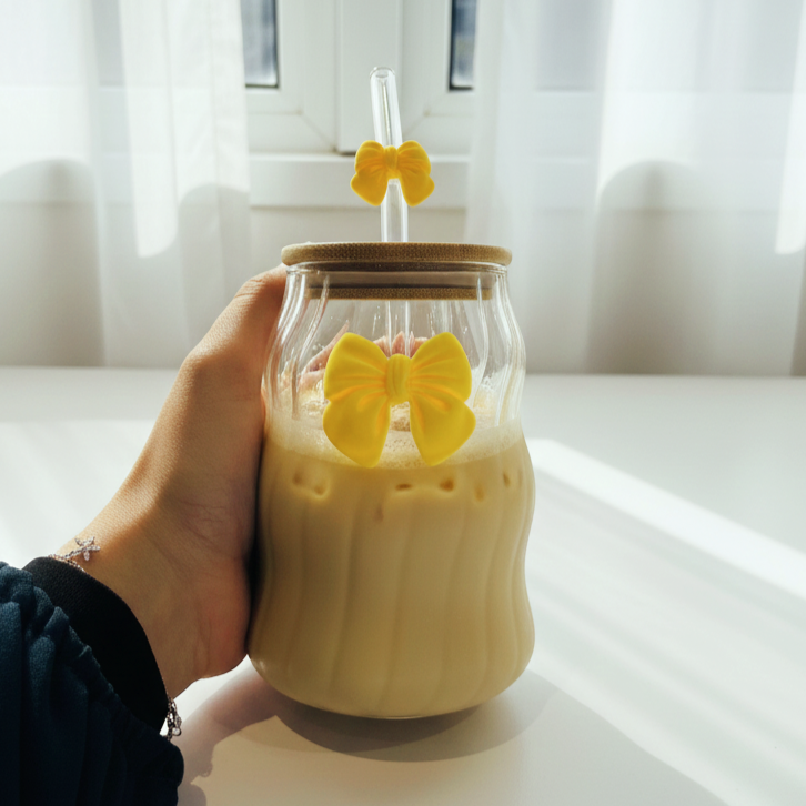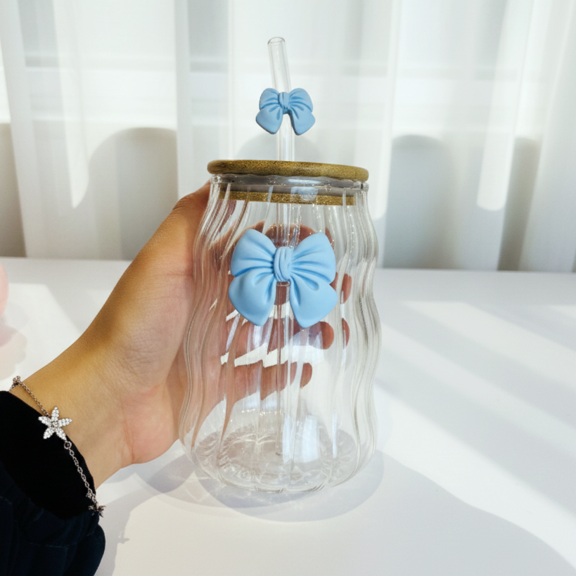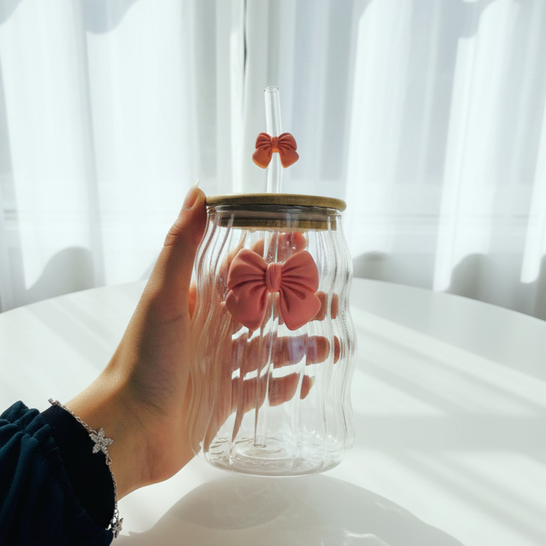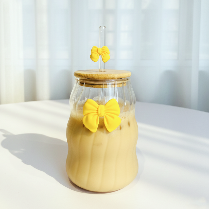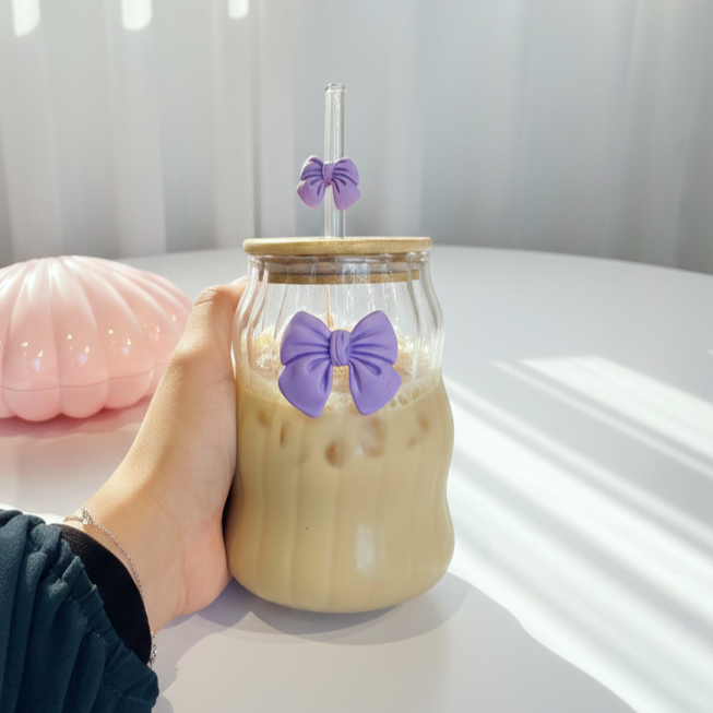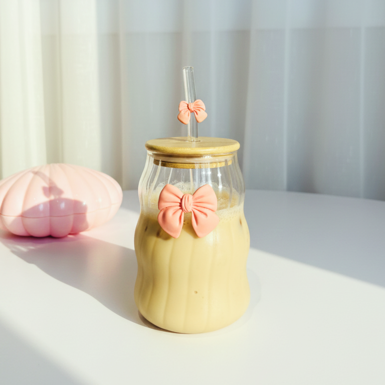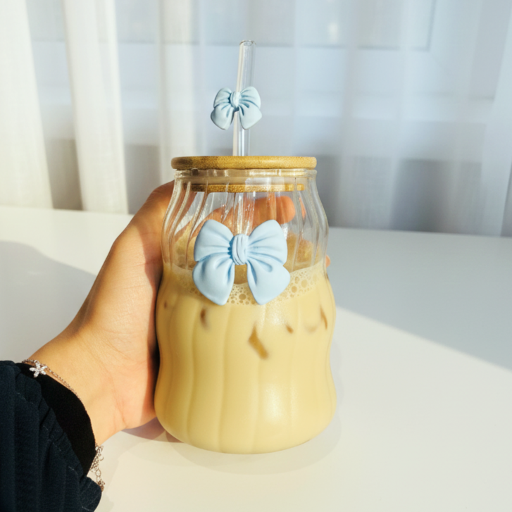 مج أيس كوفي عليه فيونكة شكله رقيق ومثالي لمشروبك المفضل الخامة بايركس حراري يتحمل حرارة وبرودة