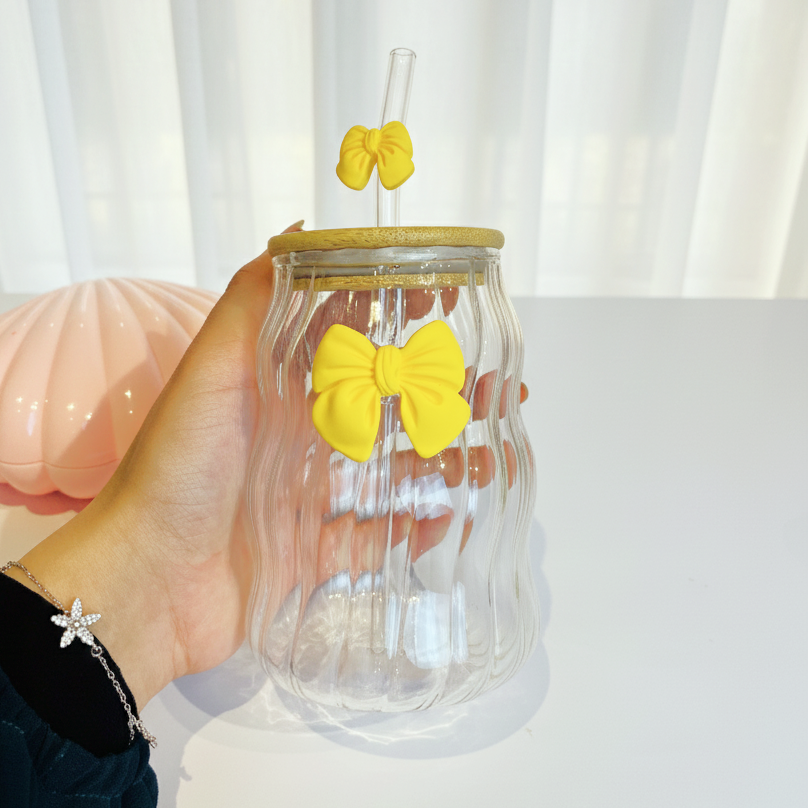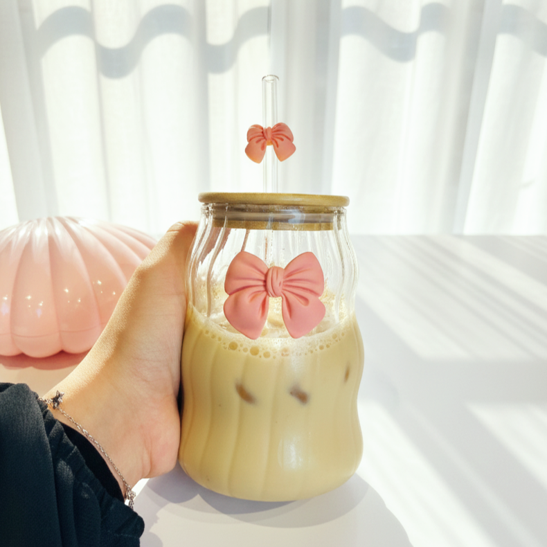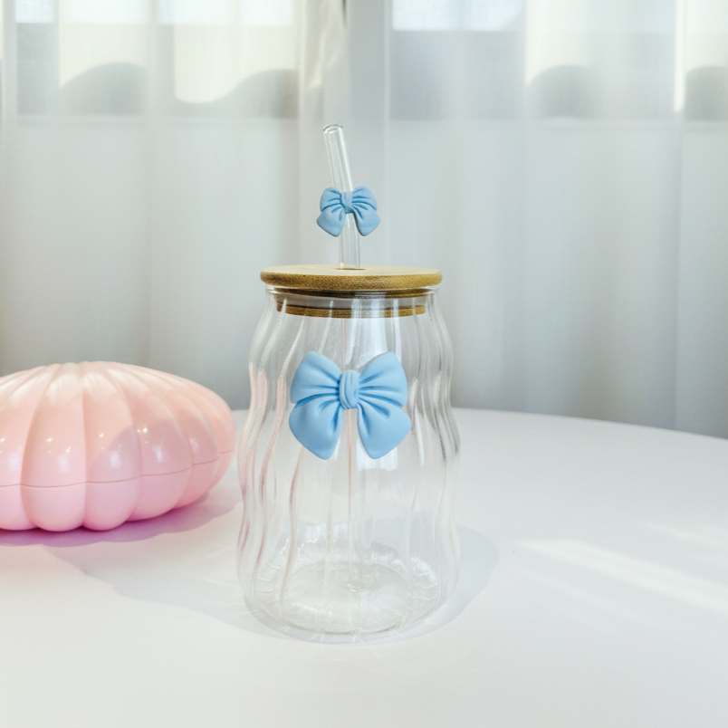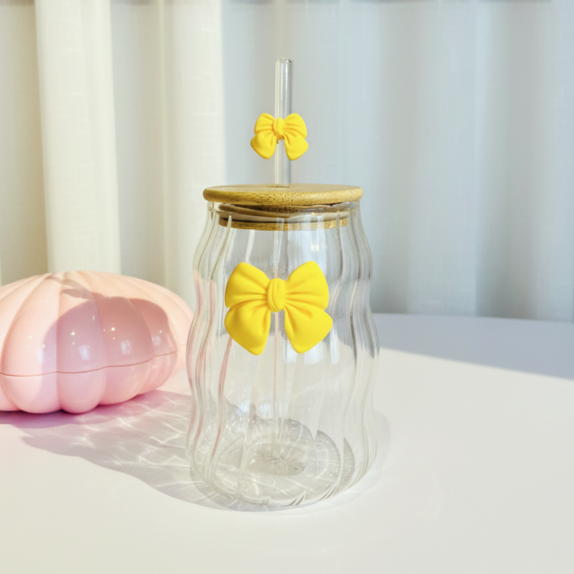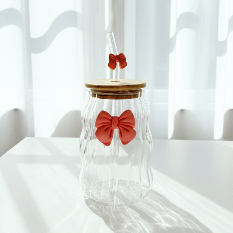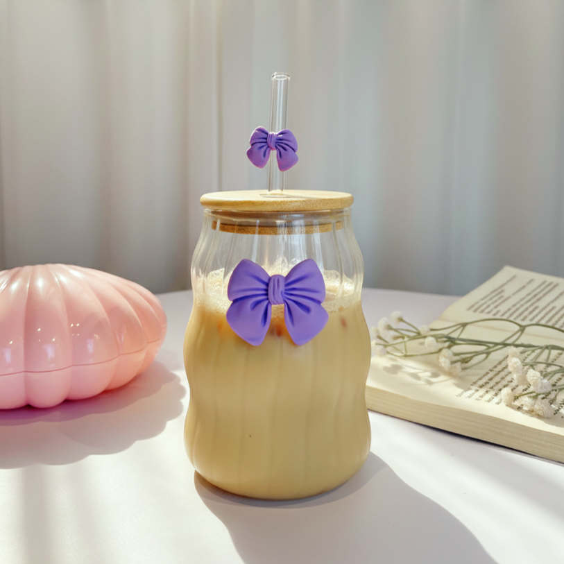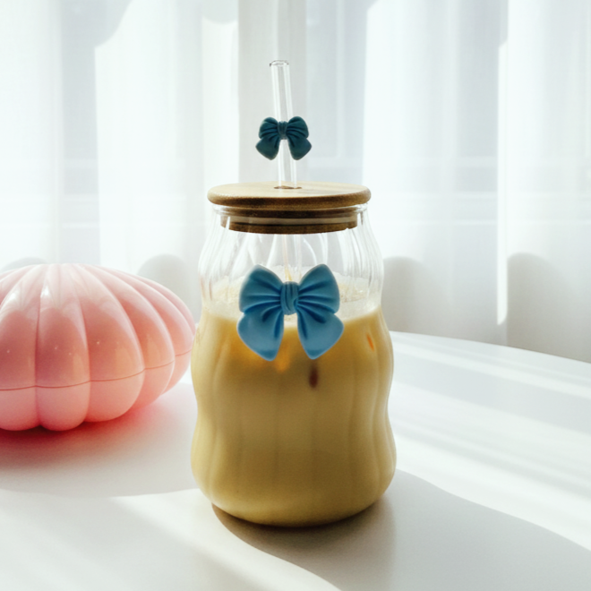 مج أيس كوفي عليه فيونكة شكله رقيق ومثالي لمشروبك المفضل الخامة بايركس حراري يتحمل حرارة وبرودة
