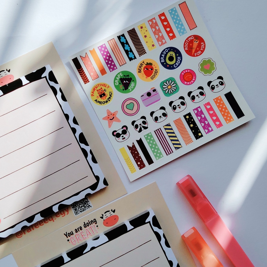 معاها شيت إستيكر فيه ٤١ أستيكر عشان نقدر نلزق بيها الإستيكي نوت