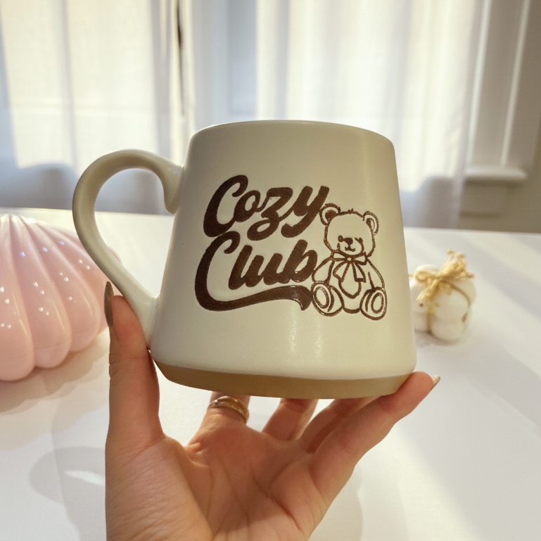 مج لطيف مكتوب عليه cozy mug ورسمة دبدوب مناسب لأجواء الشتا الدافئة