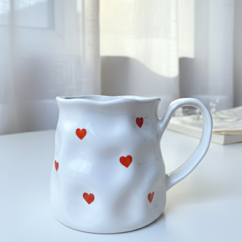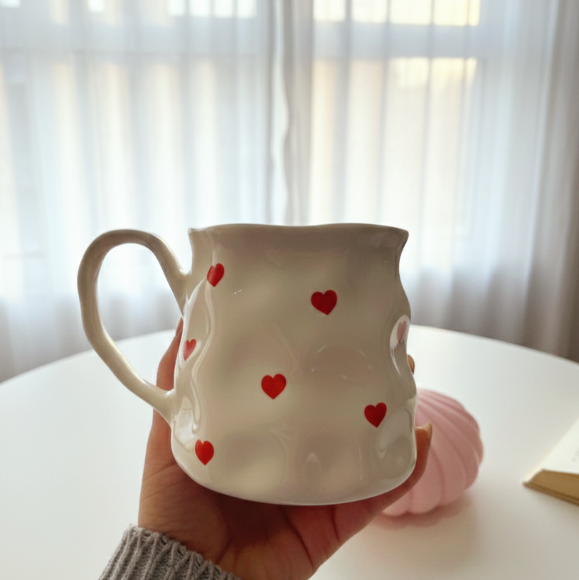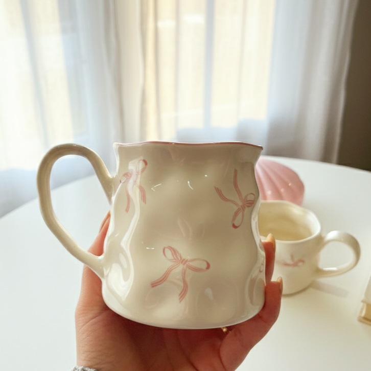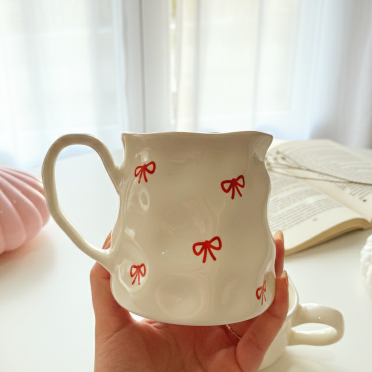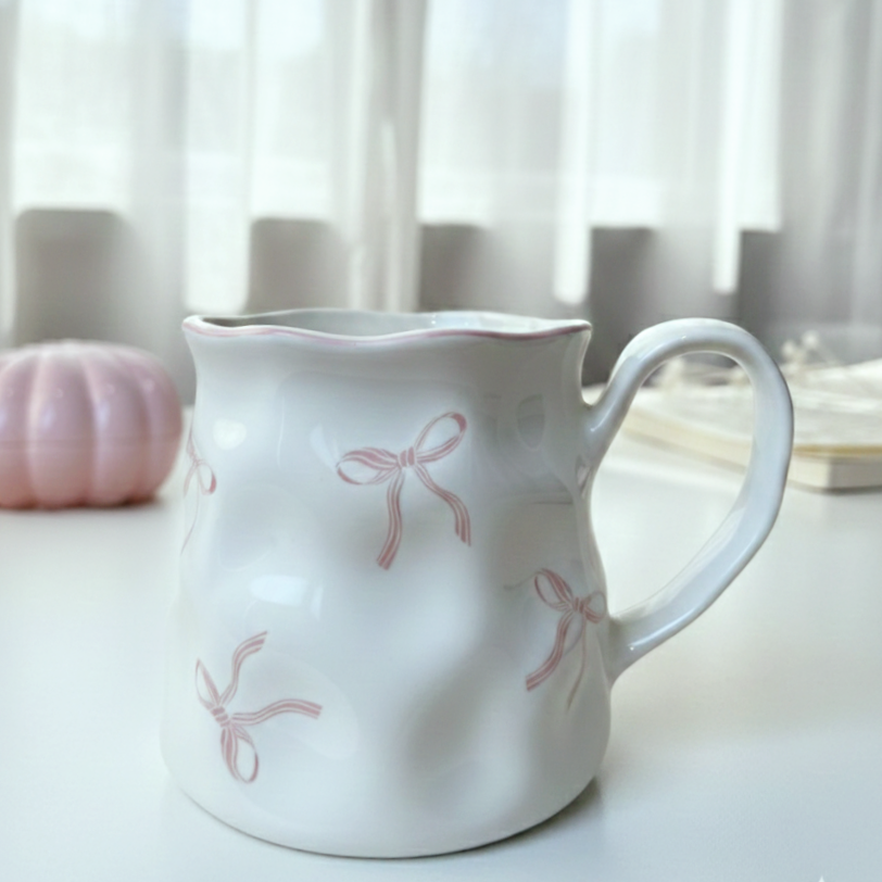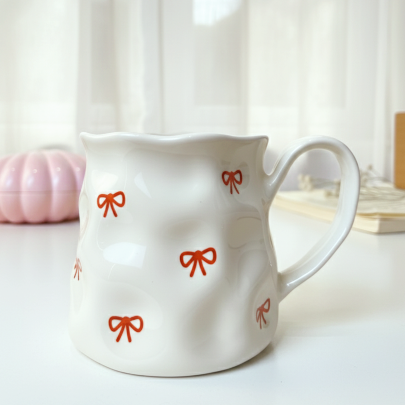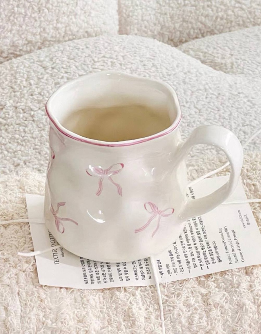 مج رقيق بتعرّجات ناعمة ورسومات لطيفة بتدي إحساس بالانسياب والراحة