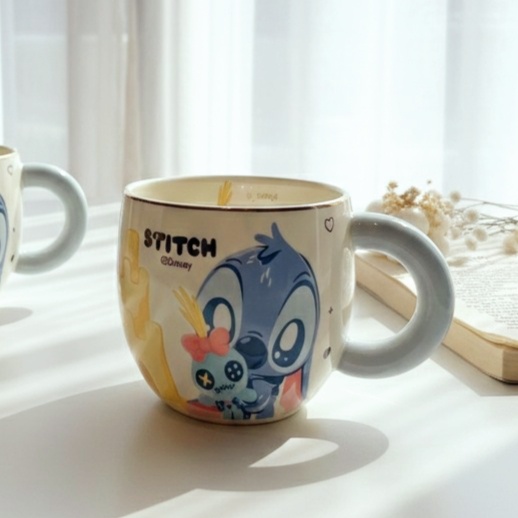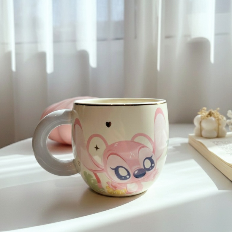 مج ديزني أوريجينال عليه رسومات استيتش وأنچل بطول المج شكله كيوت ومميز