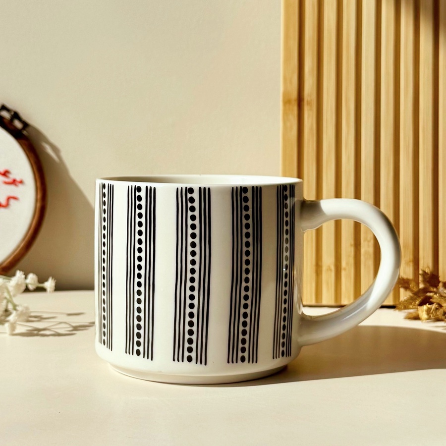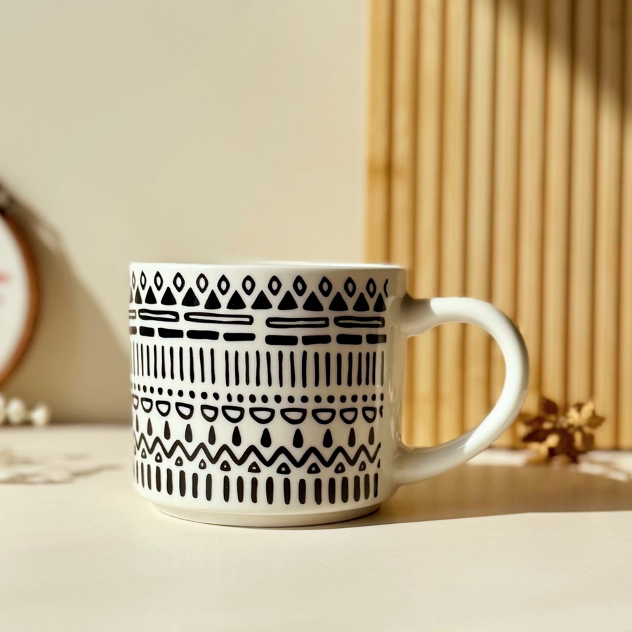 مج Doodles بتصميم رسومات أبيض وأسود مليان تفاصيل مرحة ولمسة فنية مميزة مثالي للي بيحبوا يضيفوا لمسة إبداع وأجواء فنية ليومهم