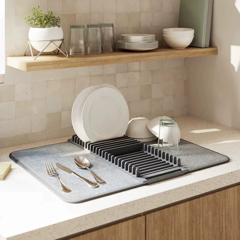 سجادة تنشيف المواعين بحامل أطباق ومعالق