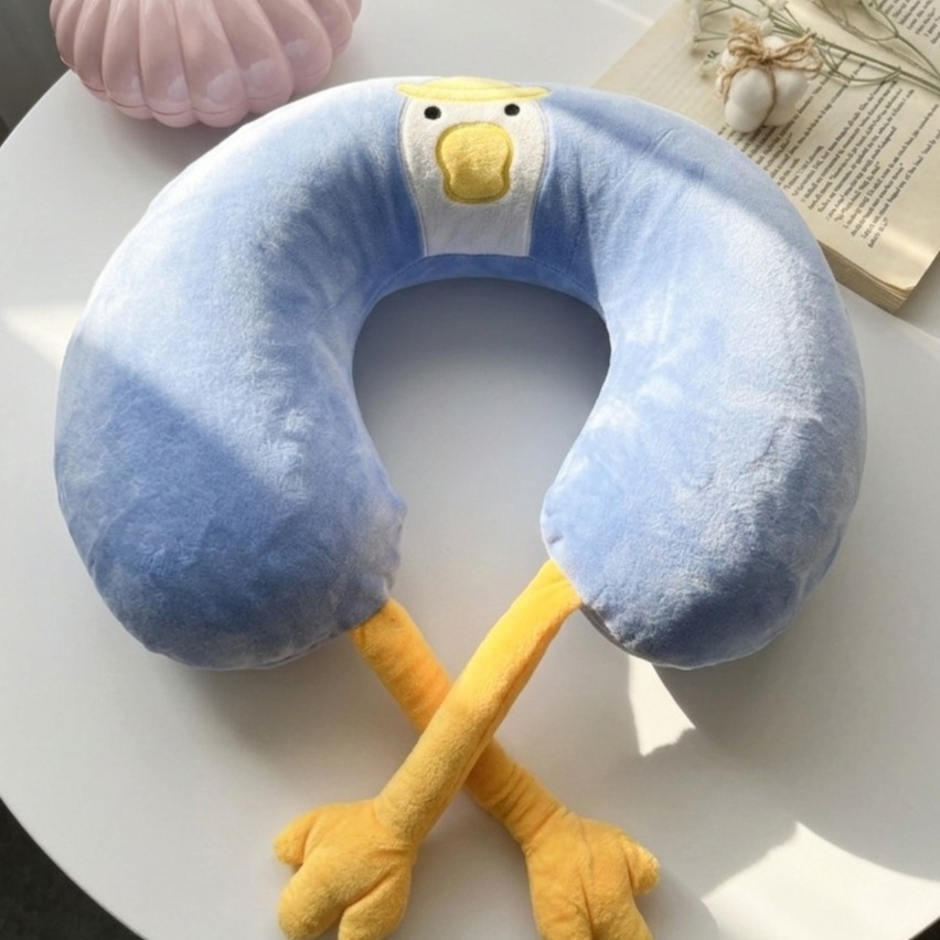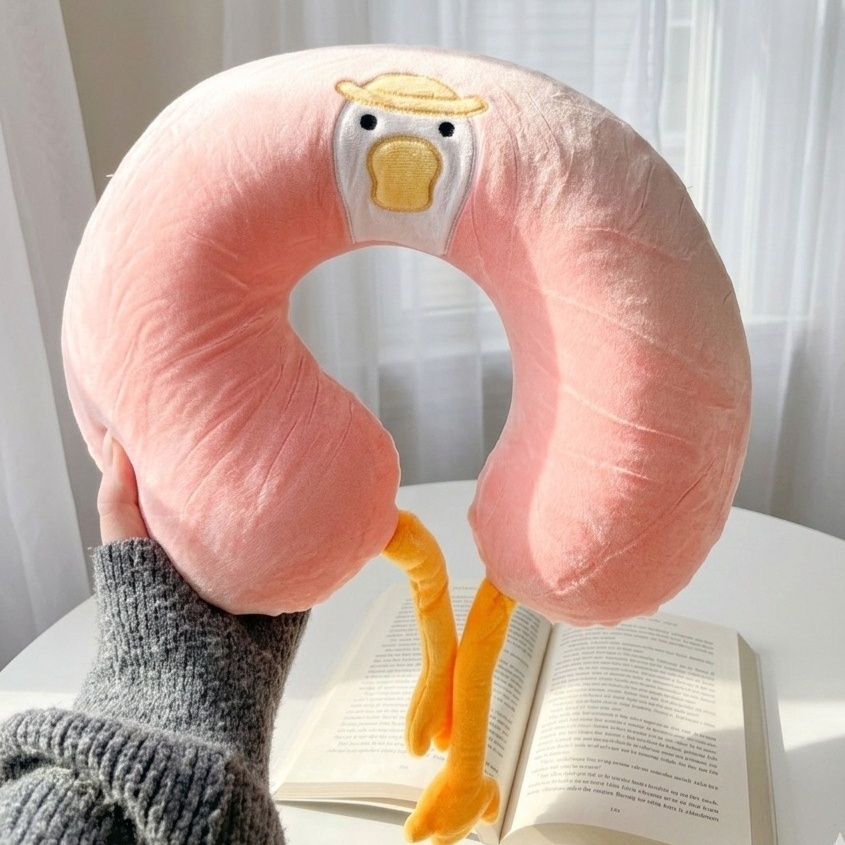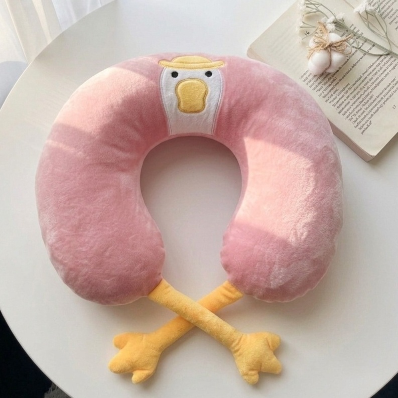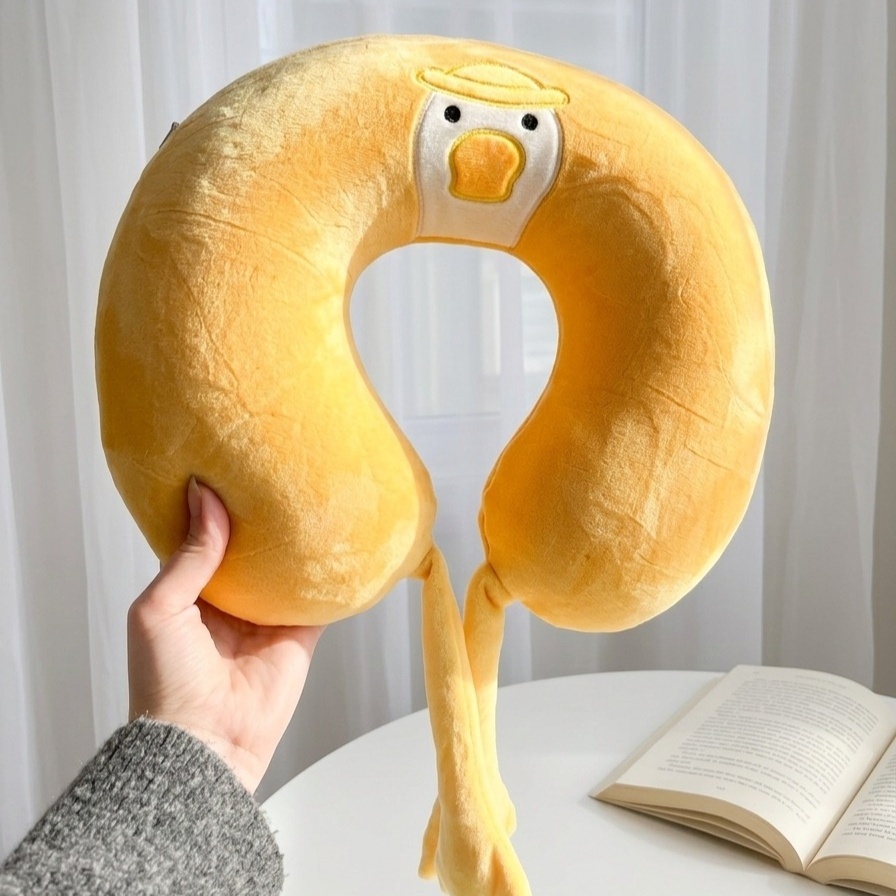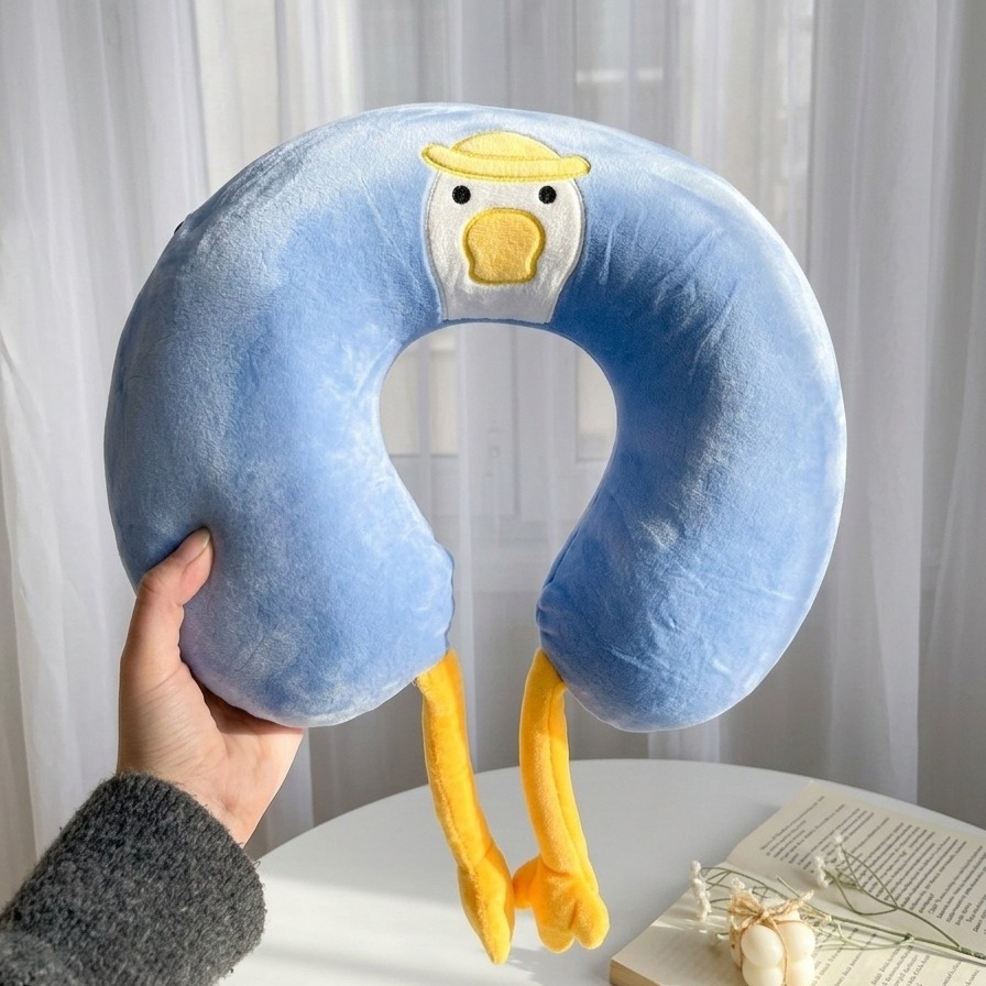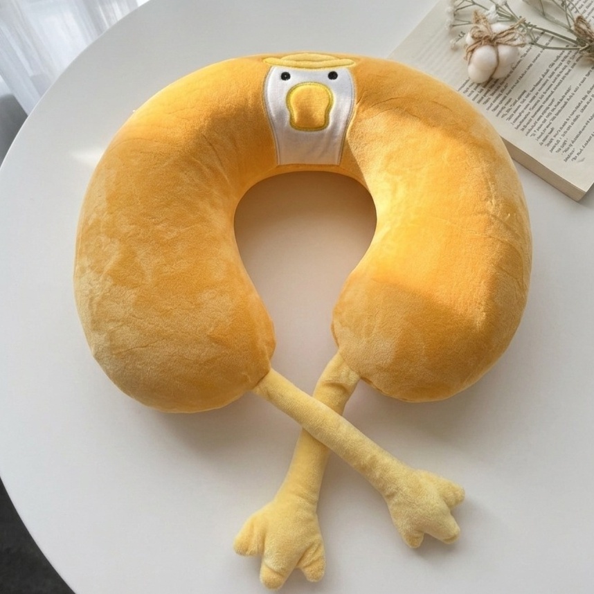 مخدة رقبة مريحة بتصميم لطيف على شكل بطة، بتوفر دعم مثالي للرقبة أثناء السفر أو الراحة