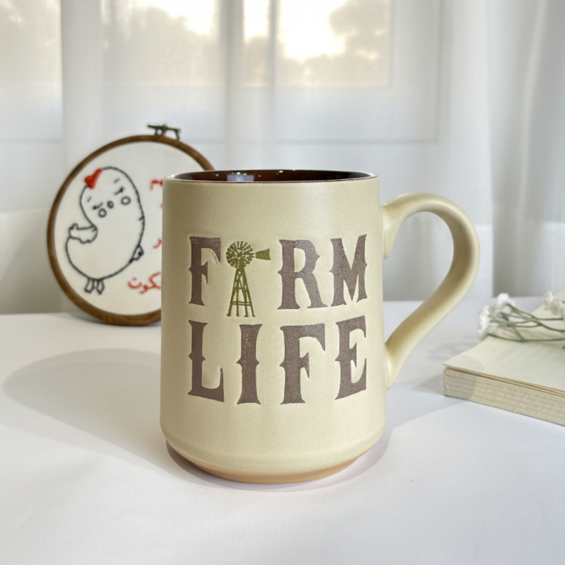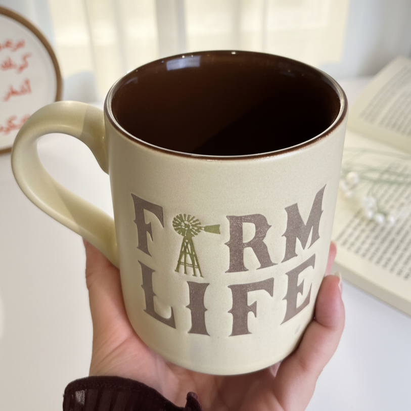 مج مميز مكتوب عليه جملة Farm Life شكله مختلف وكلاسيك