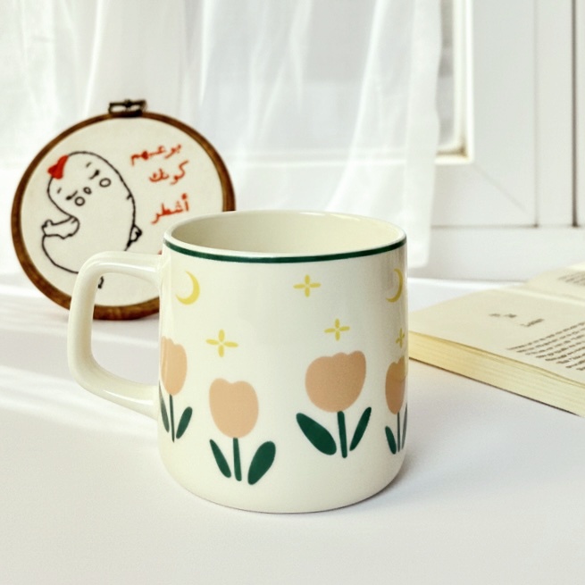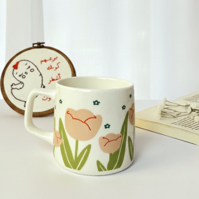 مج عليه رسومات ورد لطيفة بألوان مبهجة هيبقى بداية مميزة ليومك