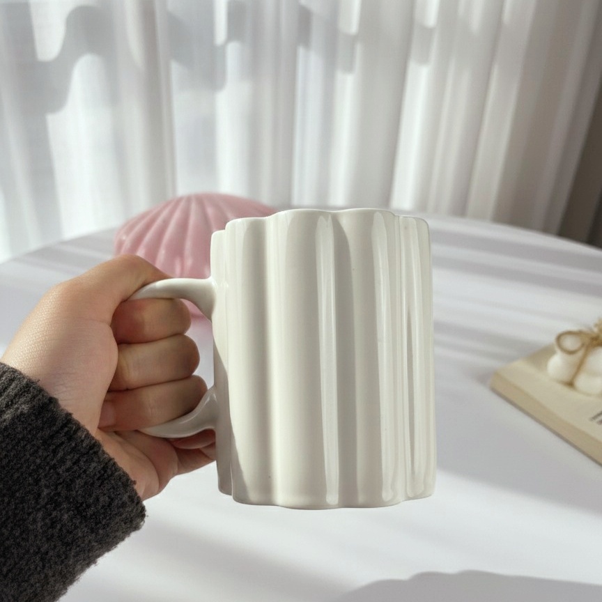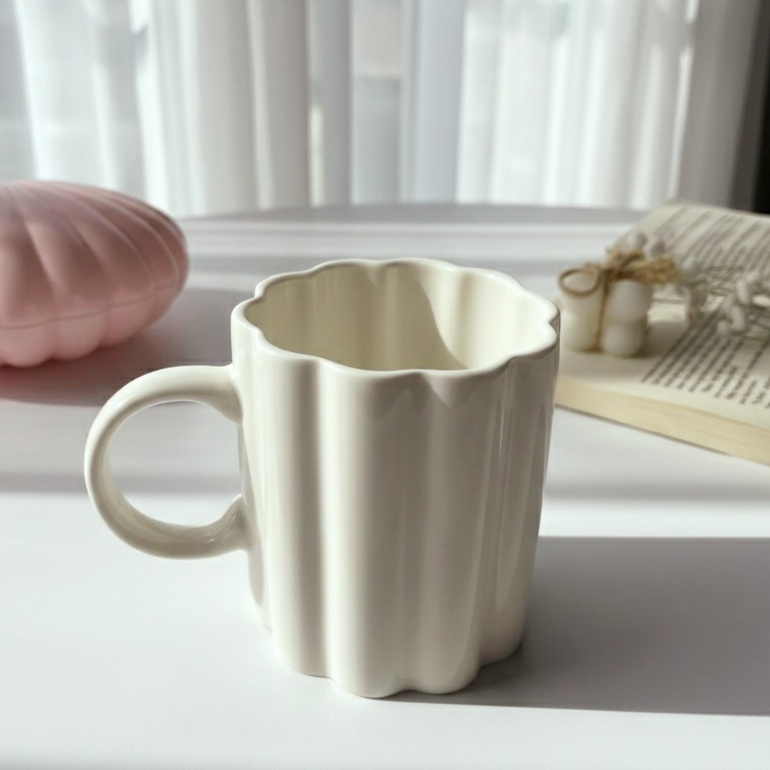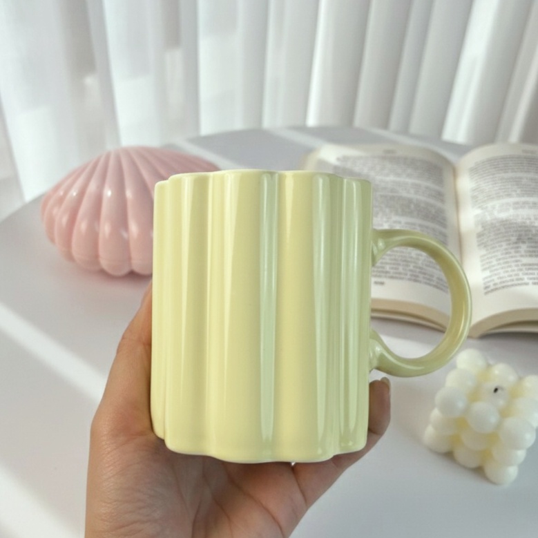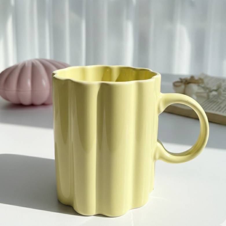 مج رقيق بيتميز بتضليعات انسيابية وفتحة المج شبه تفتح بتلات الزهور. بلونين أبيض نقي وأصفر رقيق