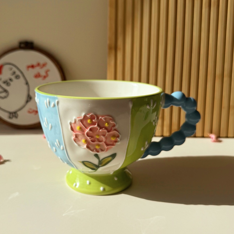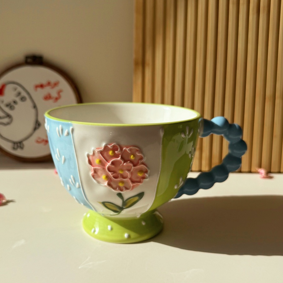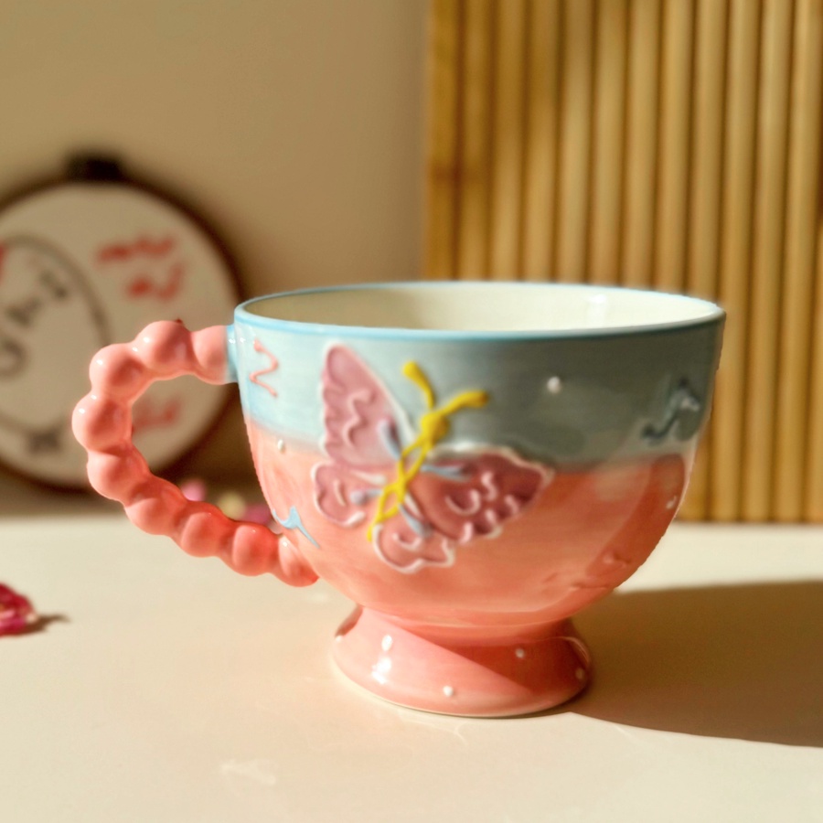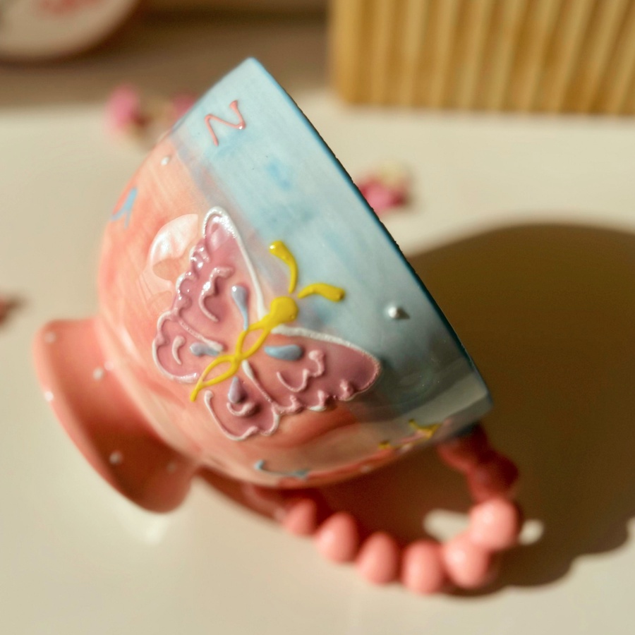 مج Flutina مستوحي من خفة الفراشات ورقة الأزهار، بألوان باستيل ناعمة ونقوش بارزة بتضيف لمسة من البهجة والأنوثة. تصميمها playful وأنيق في نفس الوقت