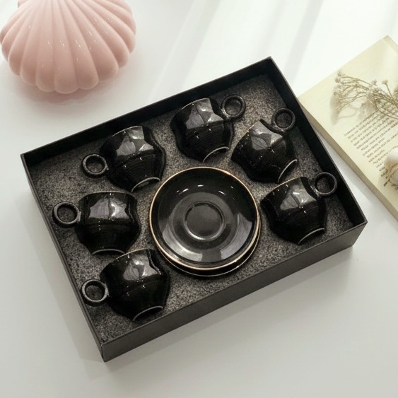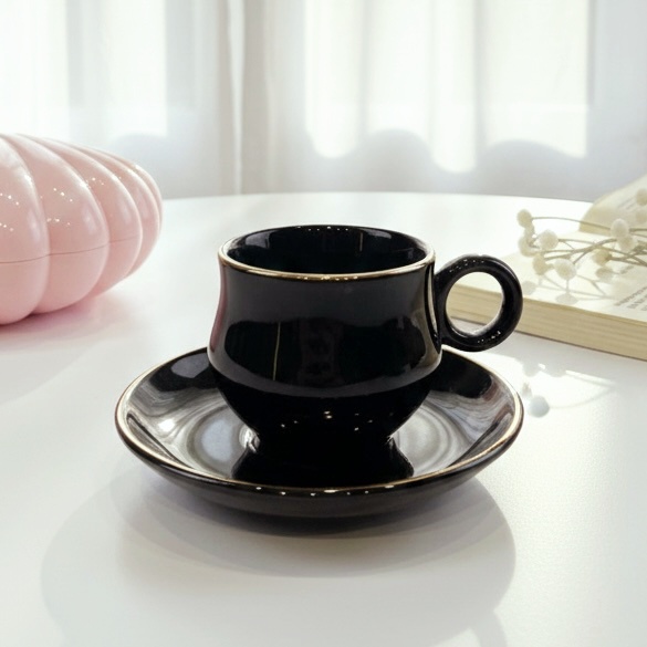 فنجان كلاسيك باللون الأسود وإطار جولد وشكل مميز لمحبي الأناقة