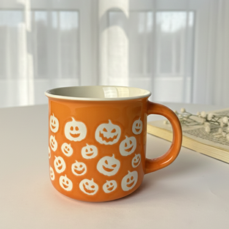 مج عليه رسومات pumpkin بشكل مختلف حجمه مميز ومناسب لمشروبك المفضل
