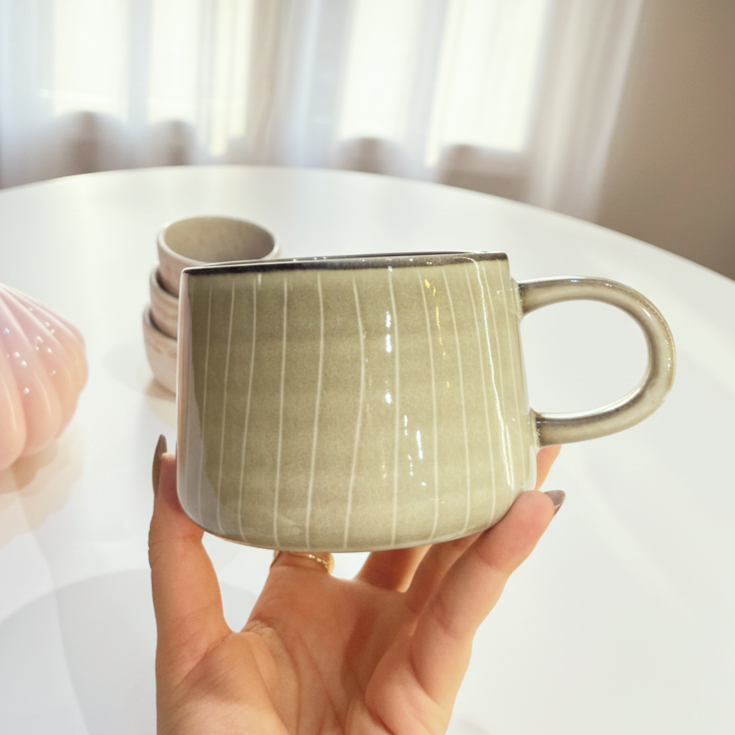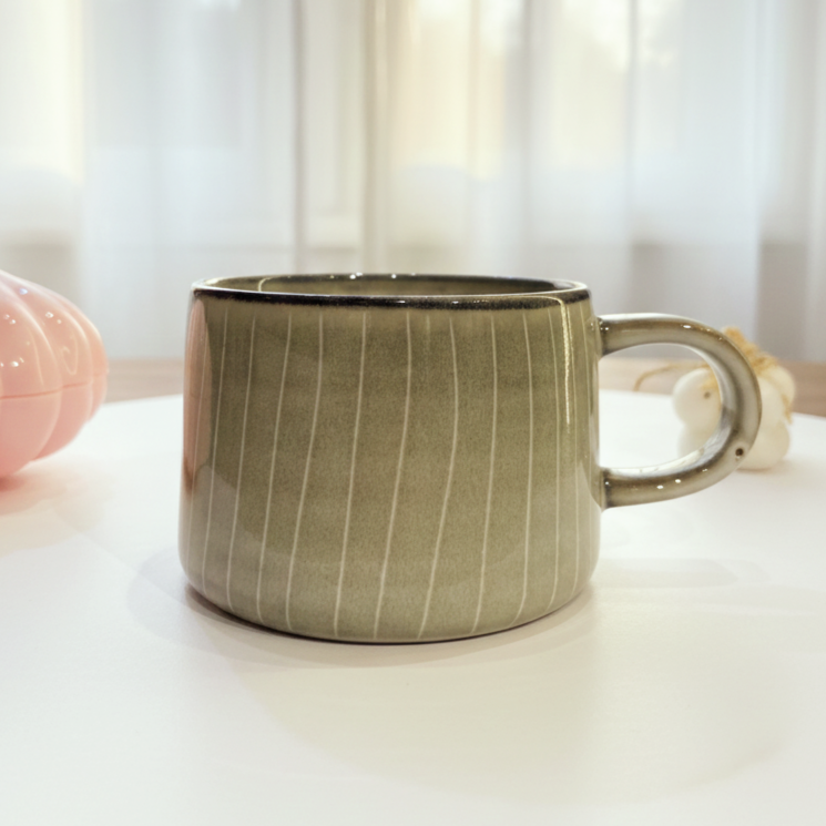 مج بلون زيتي وخطوط شكله كلاسيك وأنيق مناسب ا لمشروبك المفضل