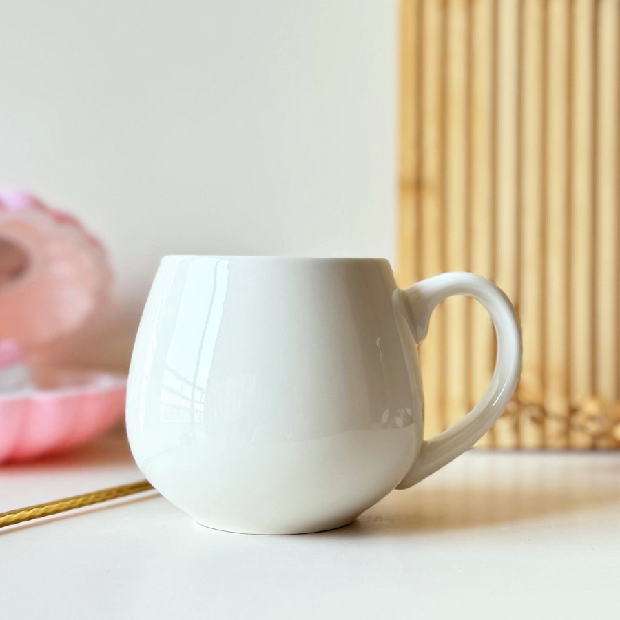 مج بومبيه بلون أبيض ناصع ولامع شكله مميز