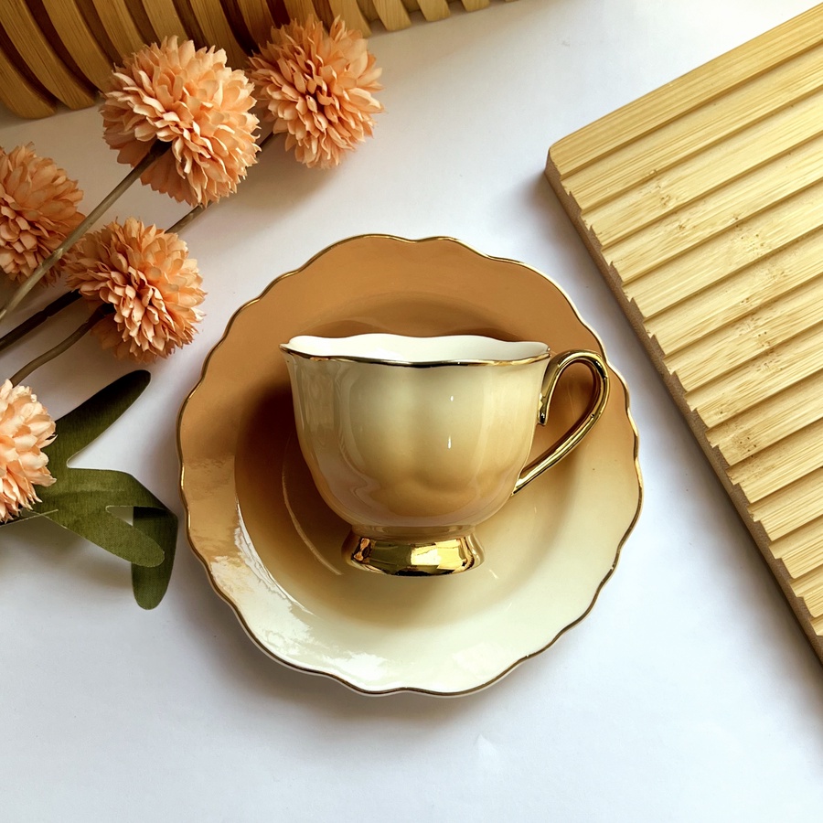 مجموعة goldora بألوان كلها بهجة ونعومة كل فنجان بلون ومدرج كإنه لوحة فنية شكل الفنجان مميز وبإطار دهبي عشان يزود أناقته وجماله