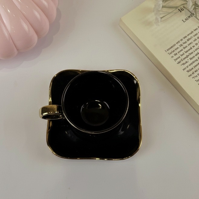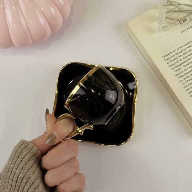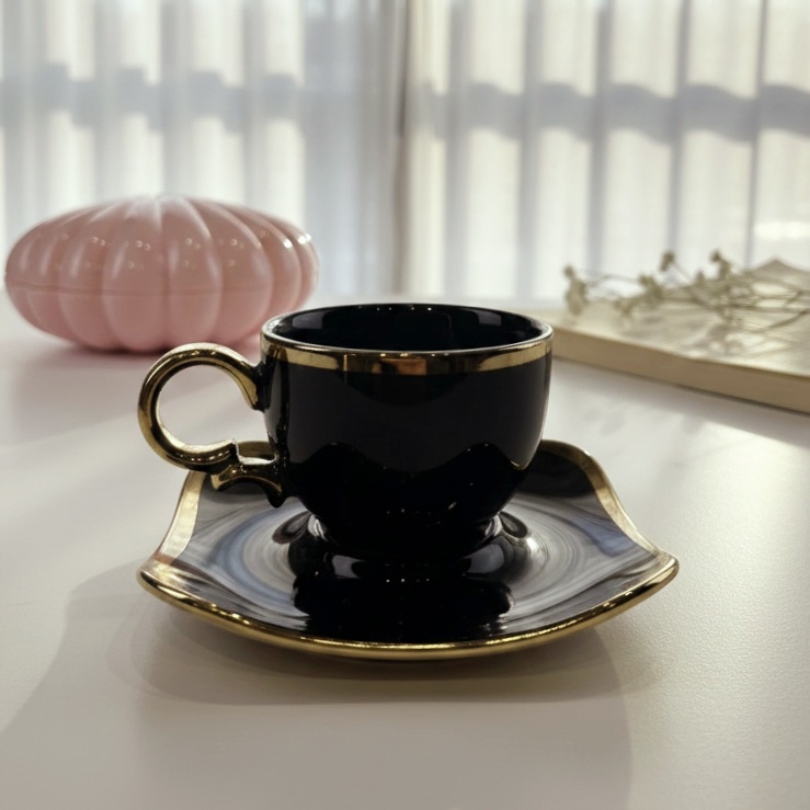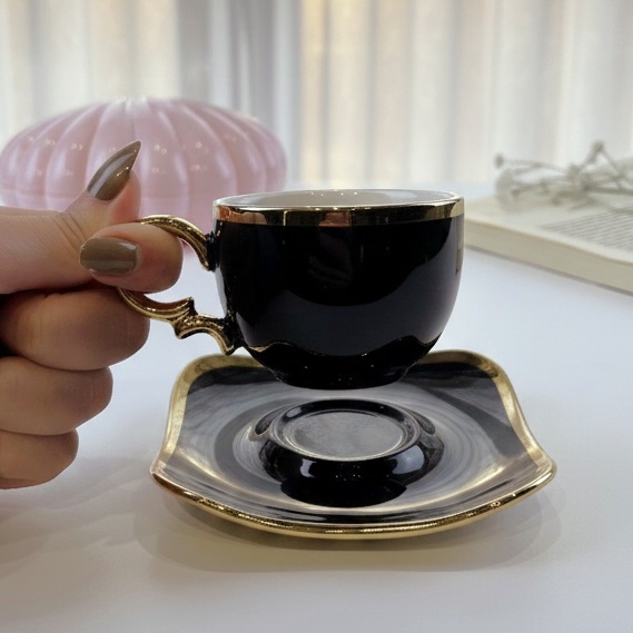 فنجان قهوة كلاسيك باللون الأسود وإطار جولد لمحبي الأناقة