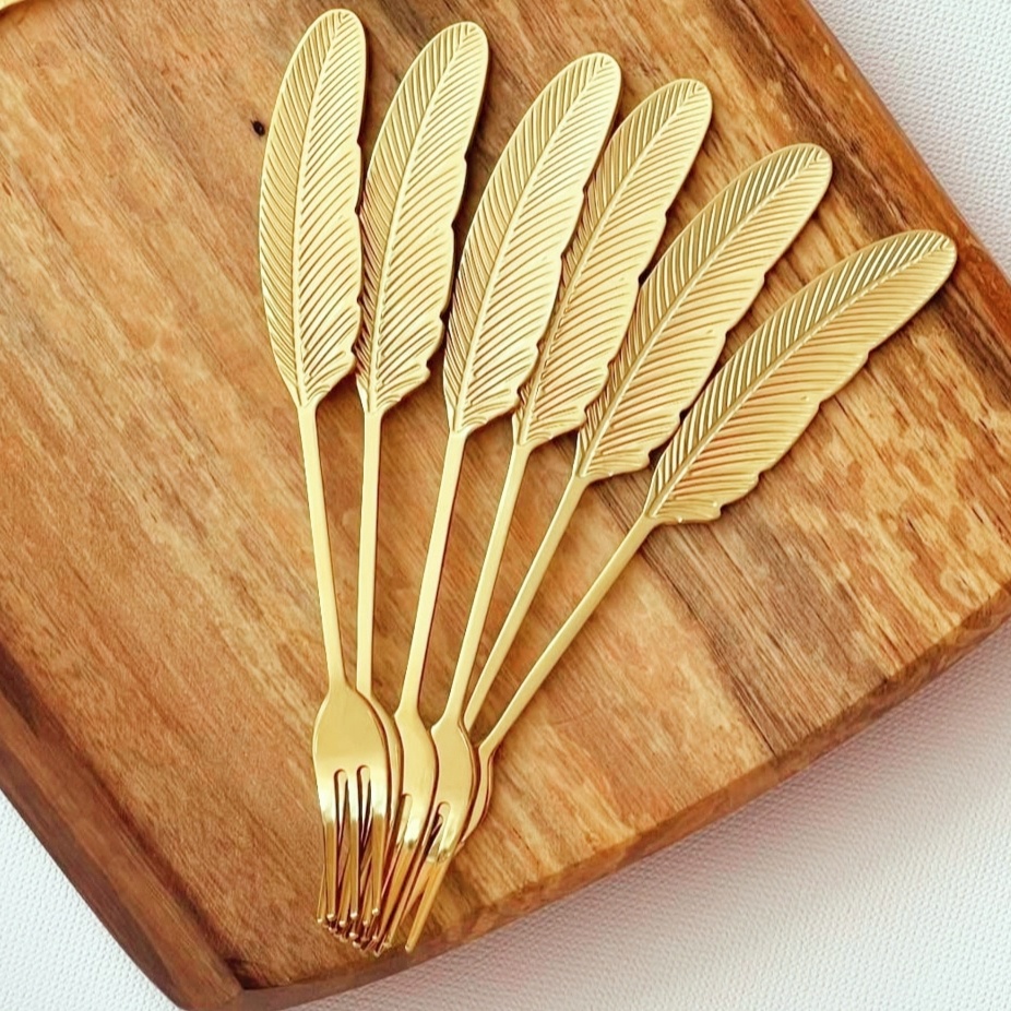 شوكة على شكل ريشة بلون جولد مميزة مناسبة للتقديم وهتبقى إضافة أنيقة لمطبخك