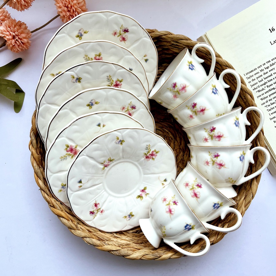 المحموعة كاملة بتتكون من ٦ فناجين و٦ أطباق
