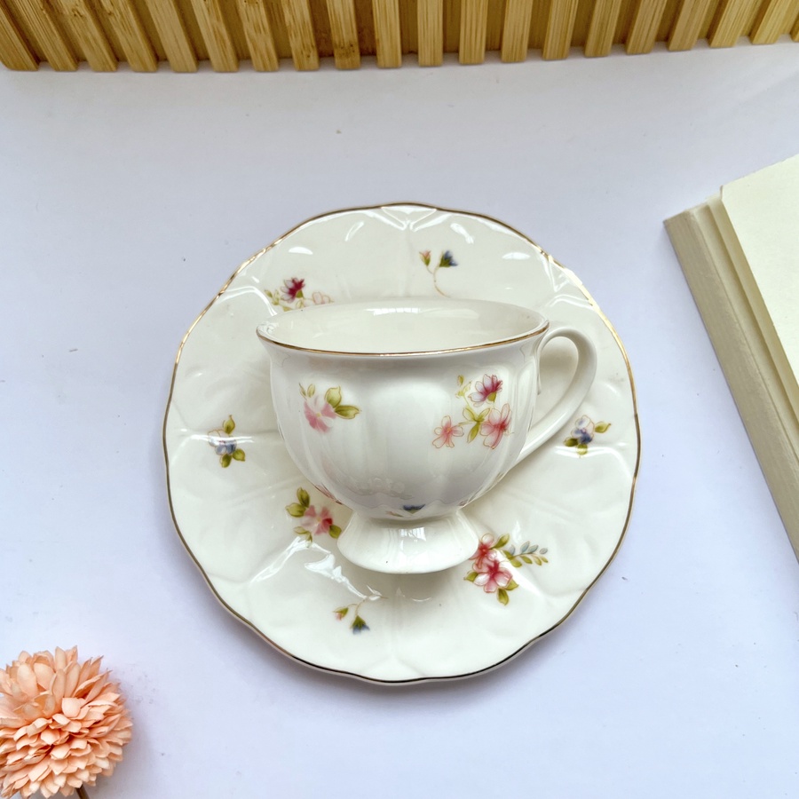 فنجان بيحمل رقة الزهور بشكل كلاسيك ناعم مزيّن بورد صغير لطيف وطرف مدهب