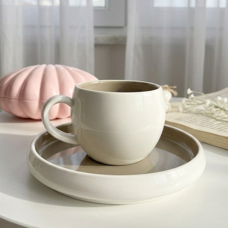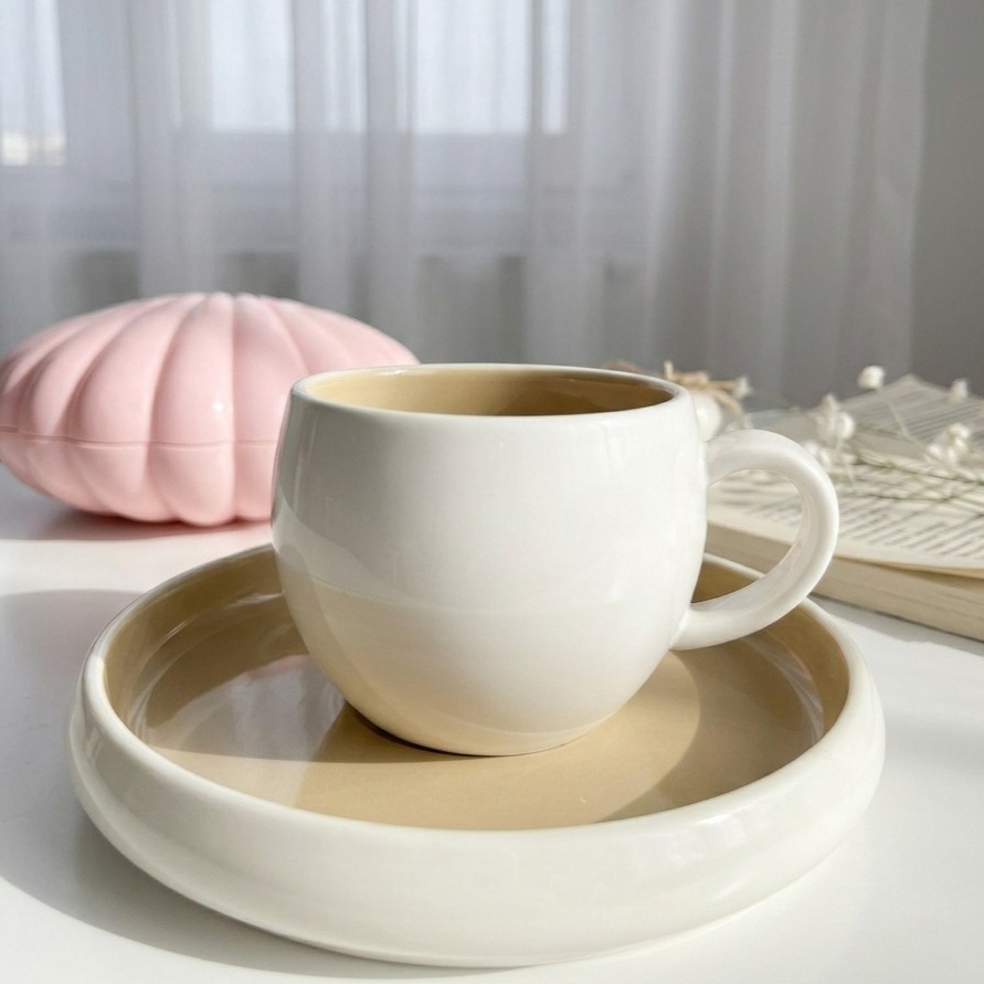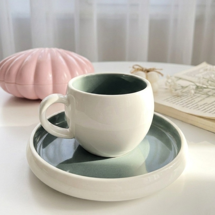 فنجان بتصميم مودرن ناعم يخطف العين بألوان مريحة وهيديكي إحساس بالهدوء
