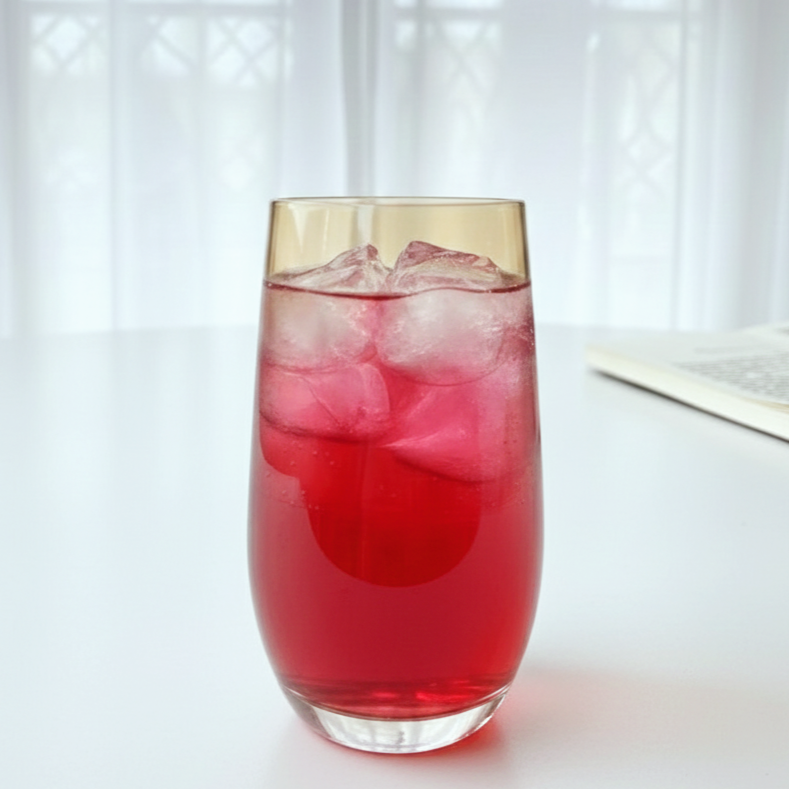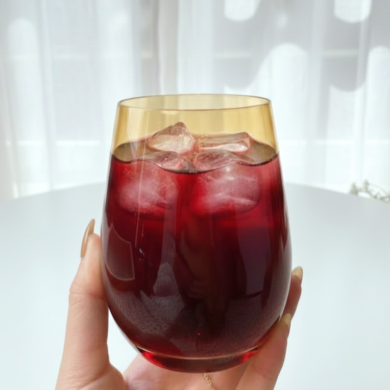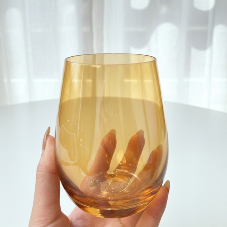شوب عصير من الزجاج النقي بلون عسلي مميز هيخليكي تستمتعي بمشروبك المفضل
