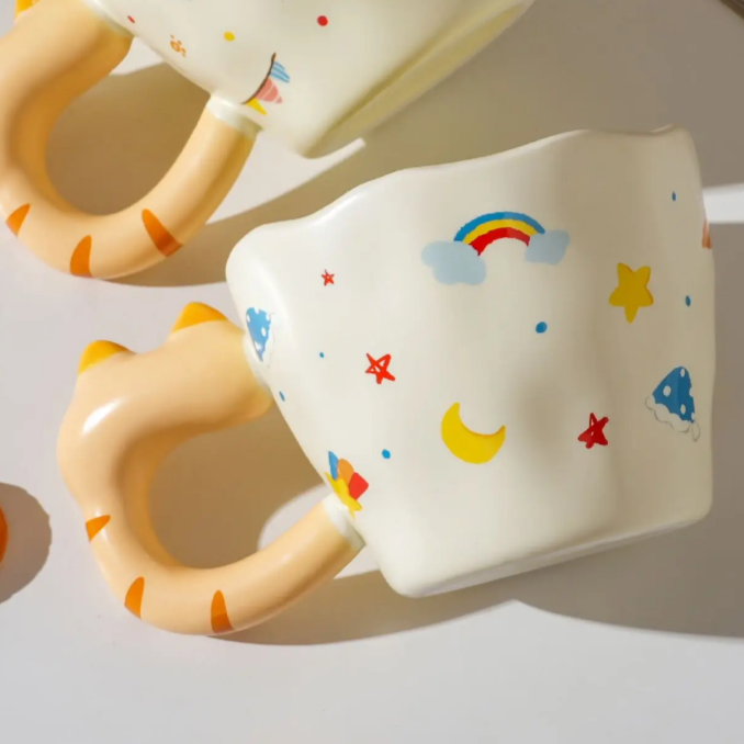 مج مخصوص لمحبي القطط إيده على شكل قطة مجسمة وعليه رسومات مميزة بطول المج