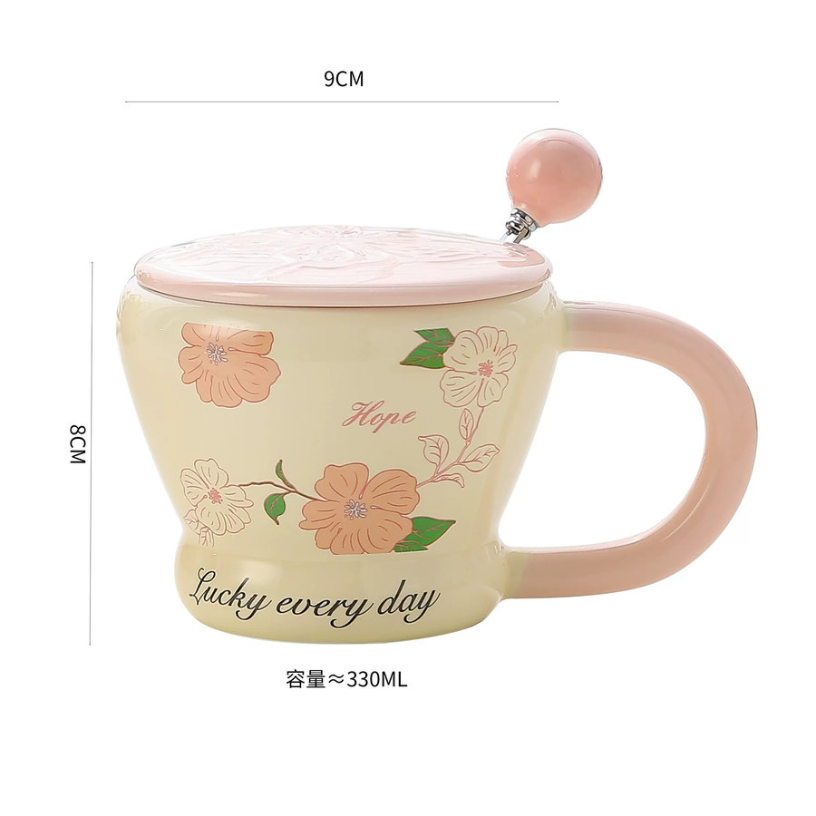 مج بلون بينك ورسومات ورود مميزة ومعاه غطا ومعلقة