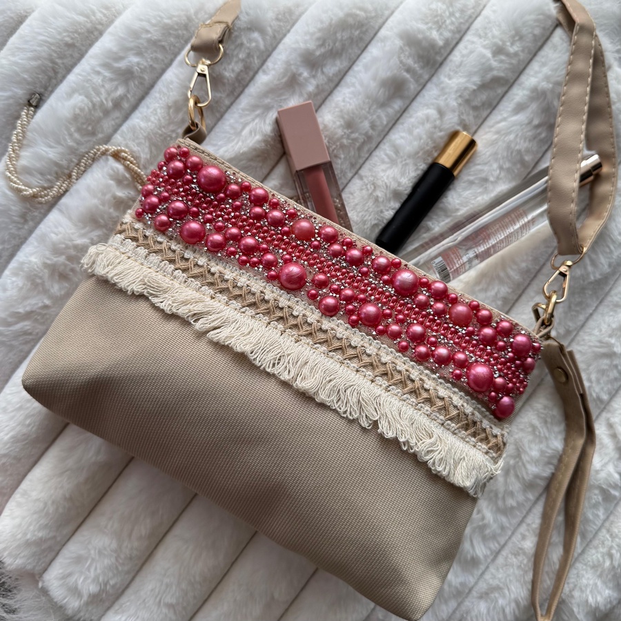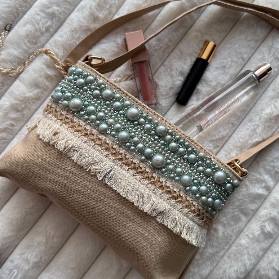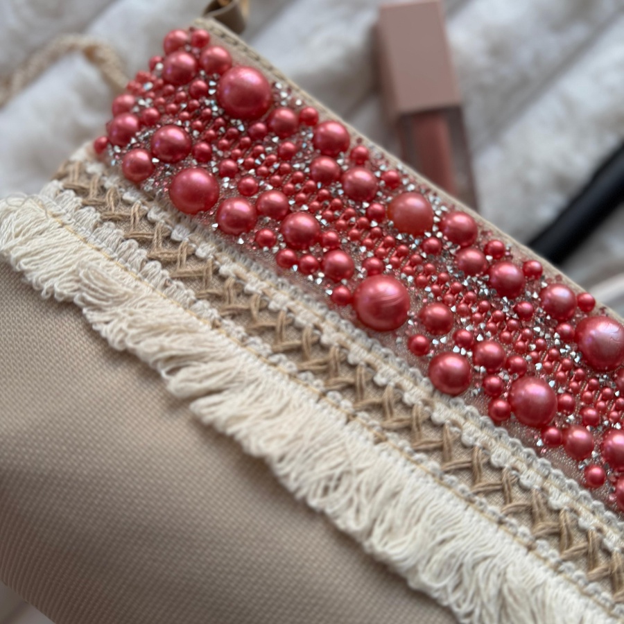شنطة كروس من الخوص ومزينة بلولي بشكل أنيق ومميز
