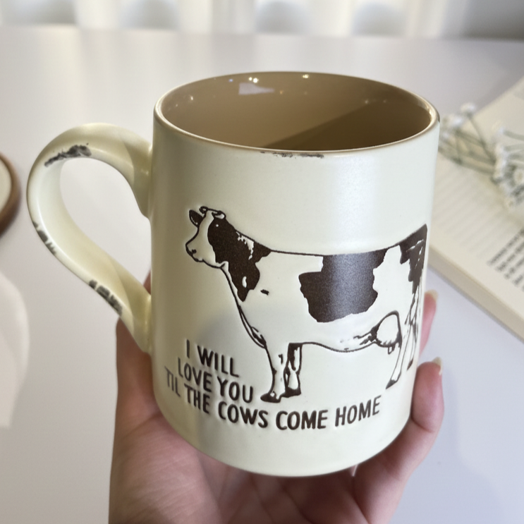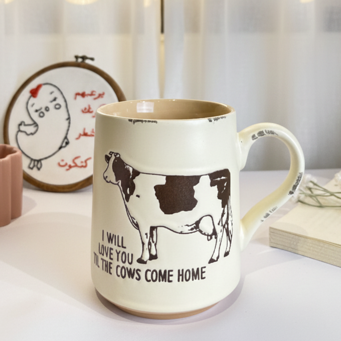 مج مميز مكتوب عليه جملة i will love you till the cows come home هدية لطيفة ومميزة