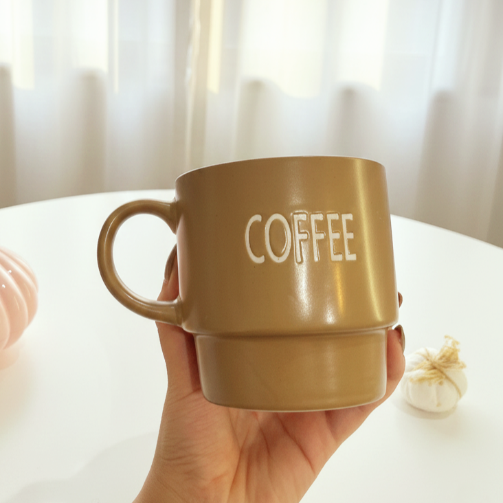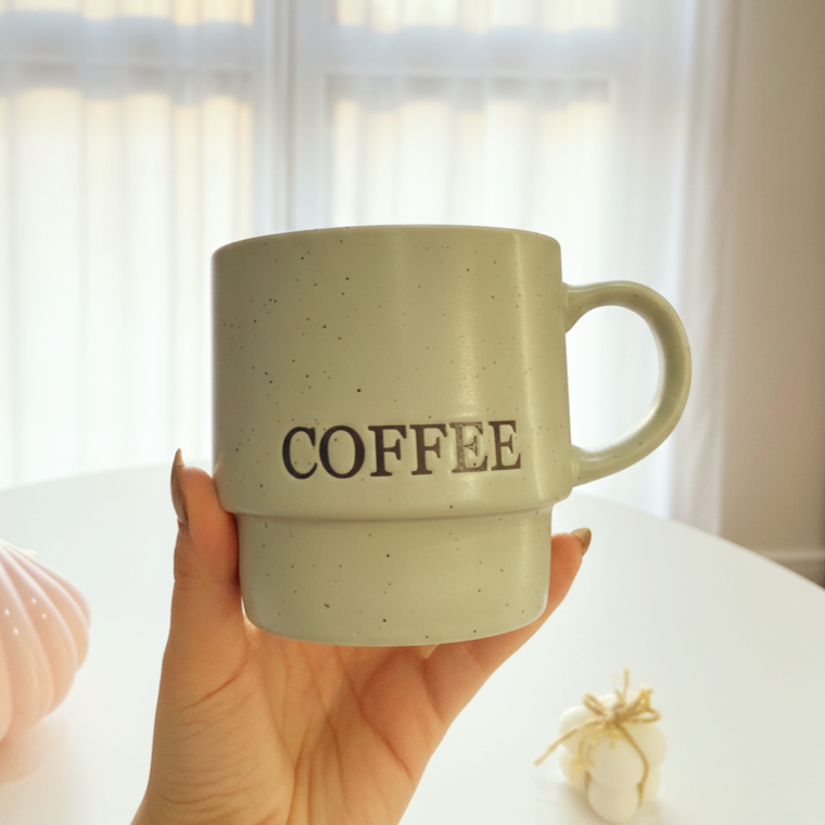 مج بألوان مط مميزة ومكتوب عليه كلمة coffee مناسب لمشروبك المفضل