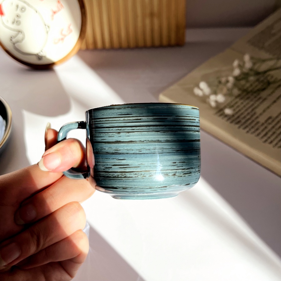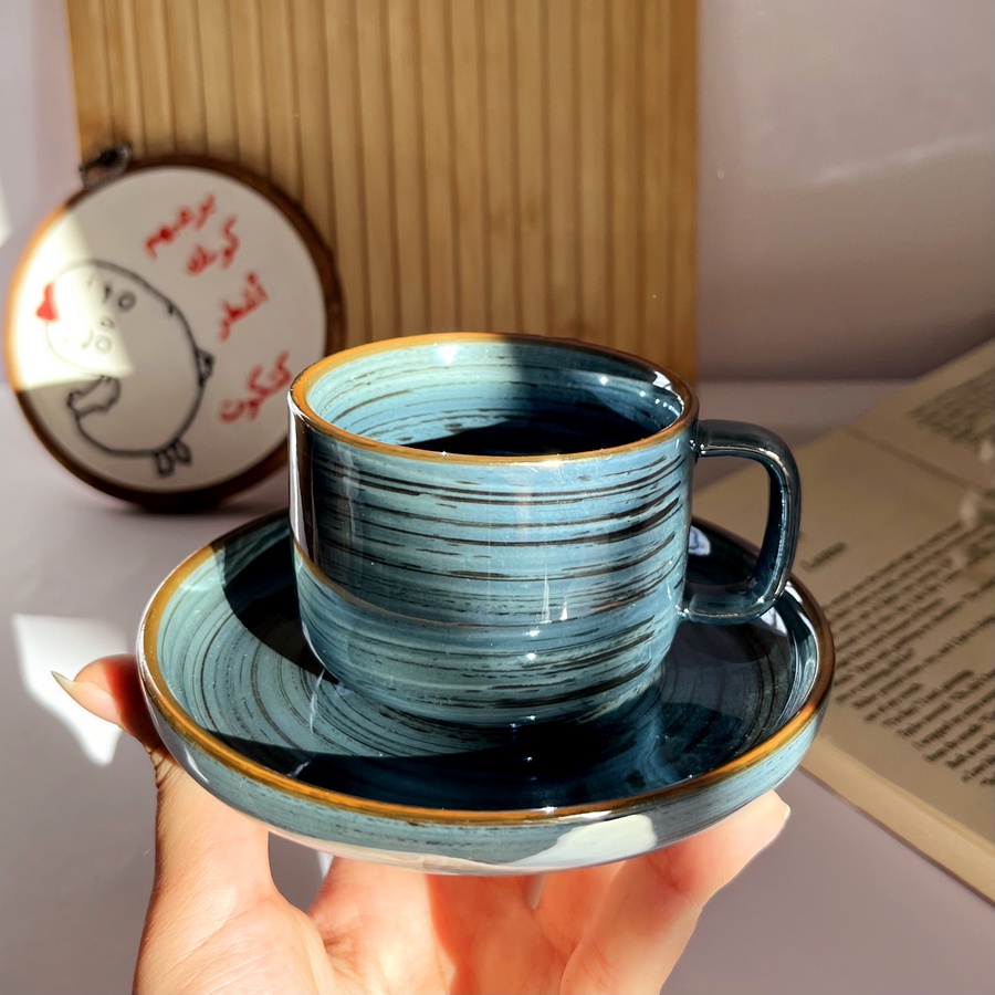 فنجان قهوة بلون مميز لامع وشكله كلاسيك وأنيق
