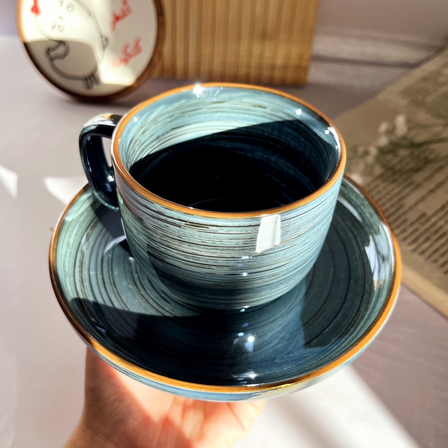 فنجان شاي بلون مميز لامع وشكله كلاسيك وأنيق
