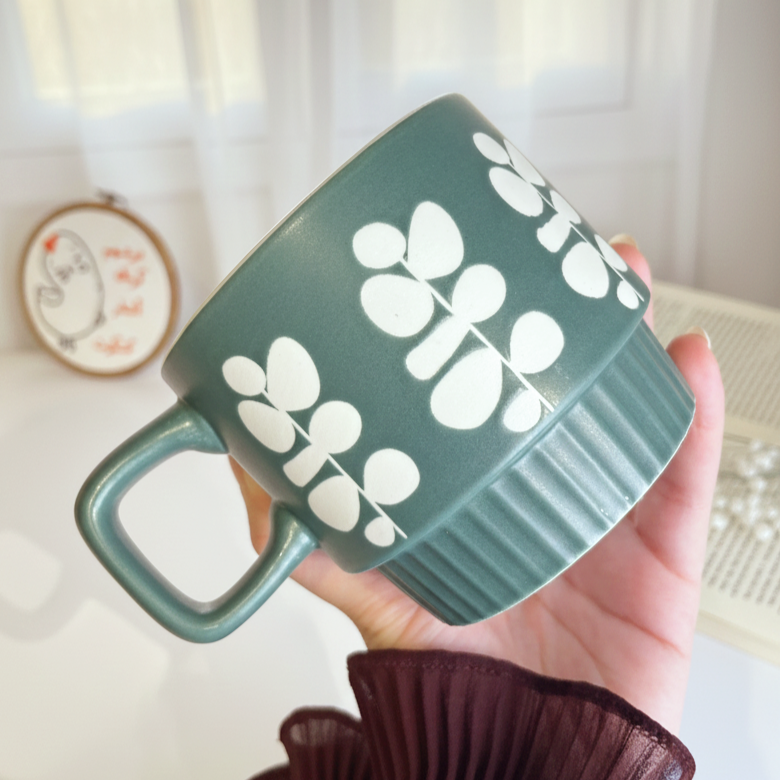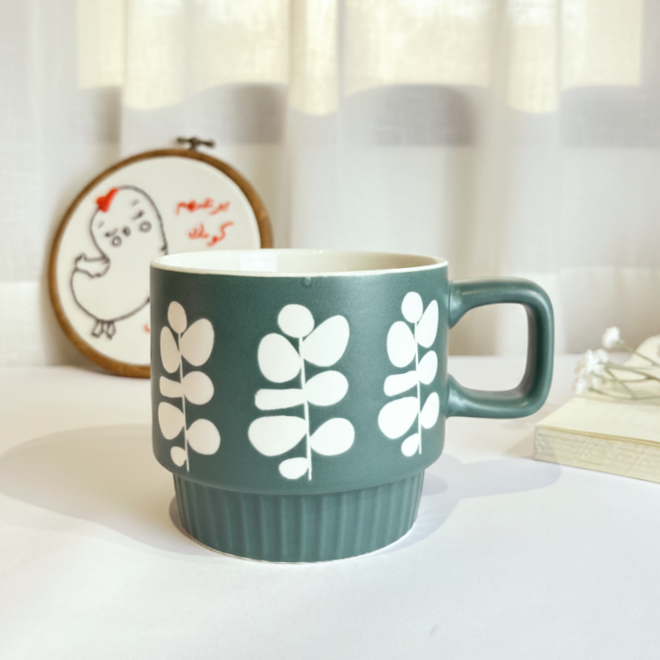 مج عليه رسومات ورد لطيفة بشكل رقيق وأنيق