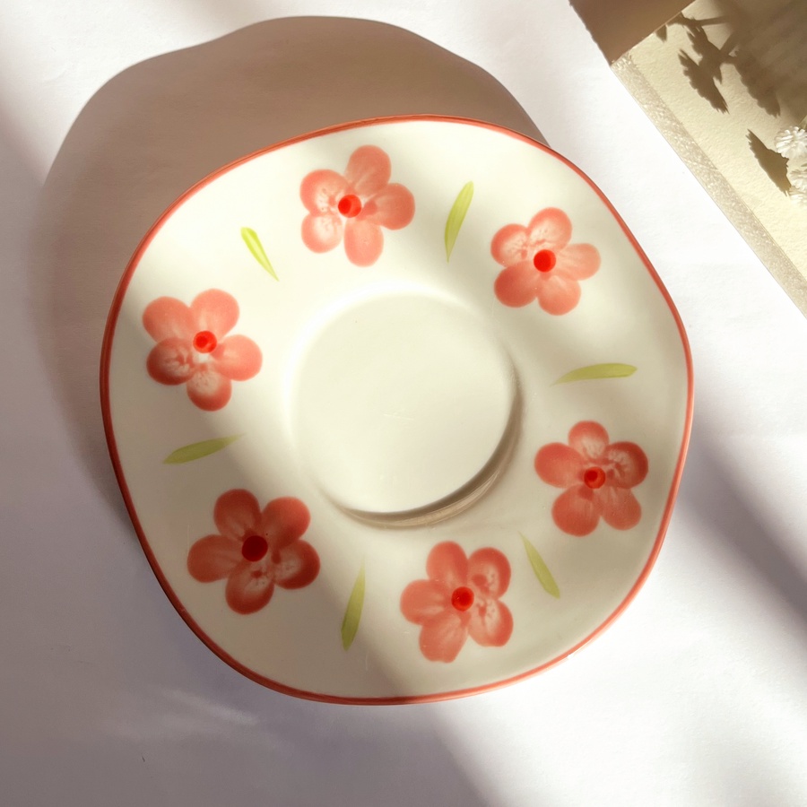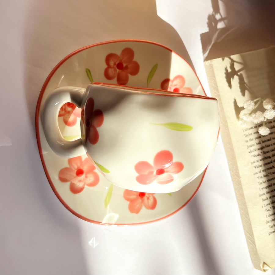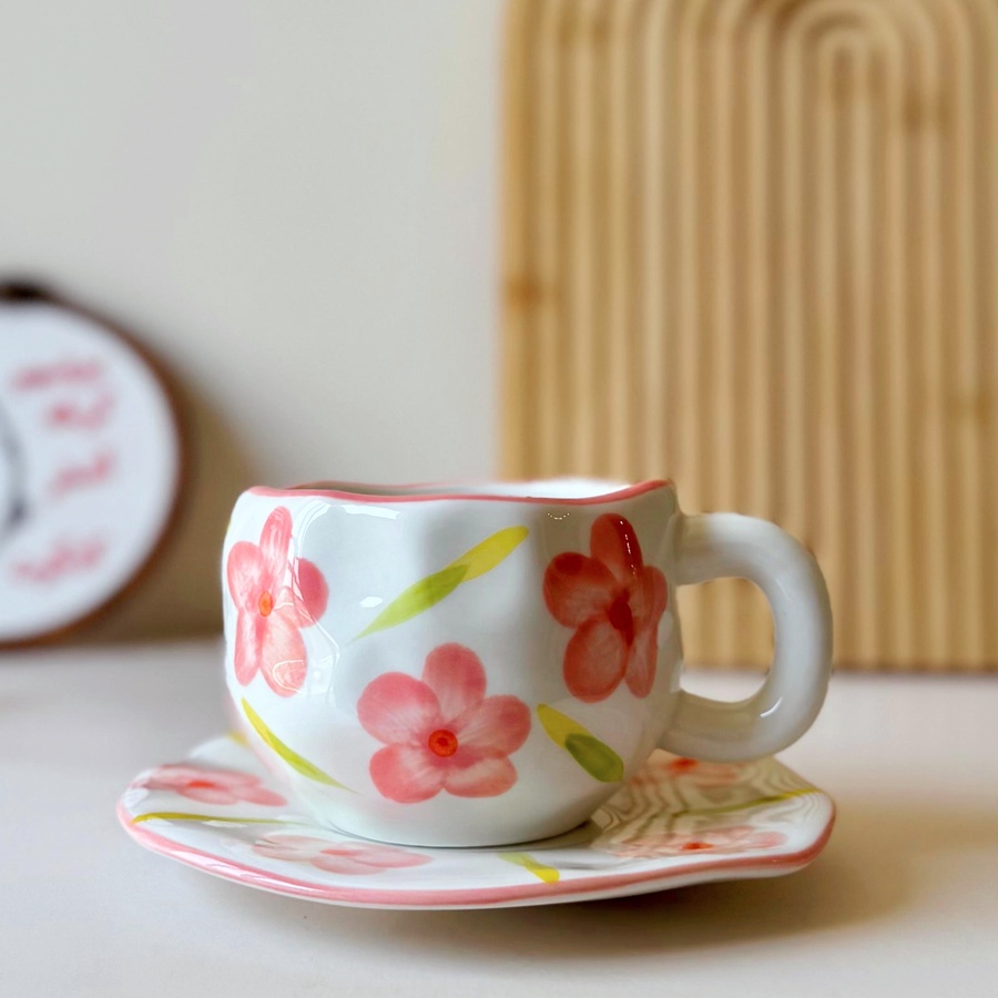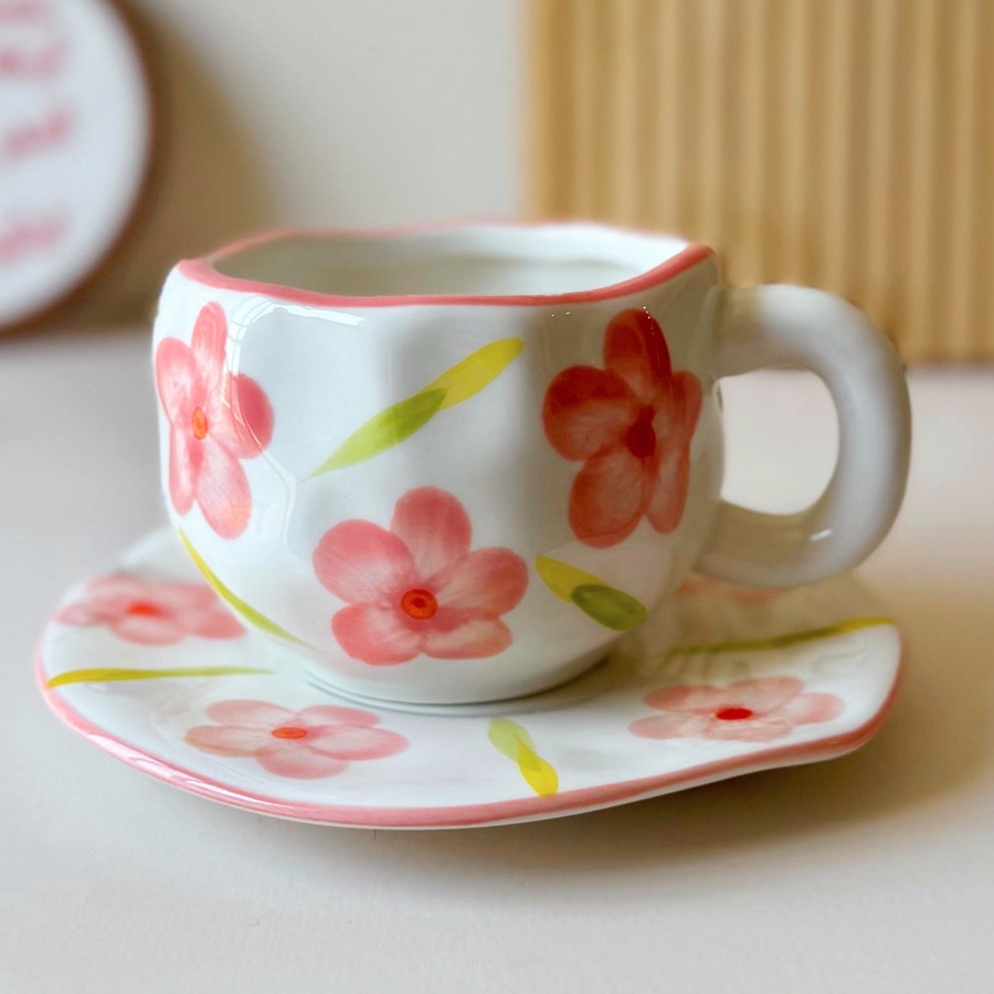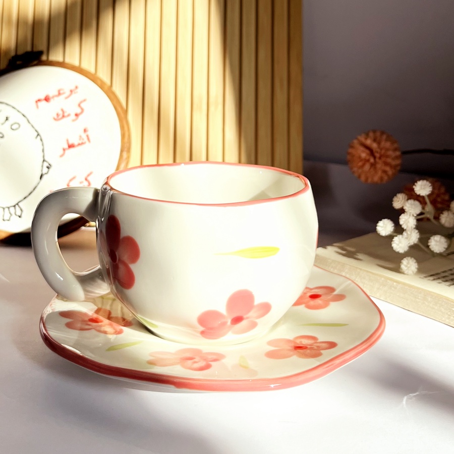 فنجان رقيق مزين بزهور وردية متفتحة بتصميم كلاسيك مع لمسة الورود هيخليه مثالي للقهوة أو الشاي