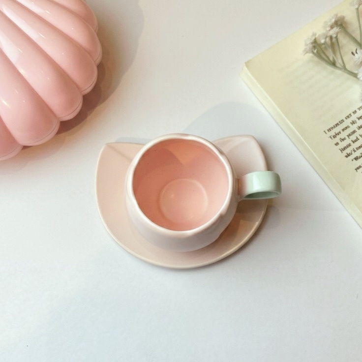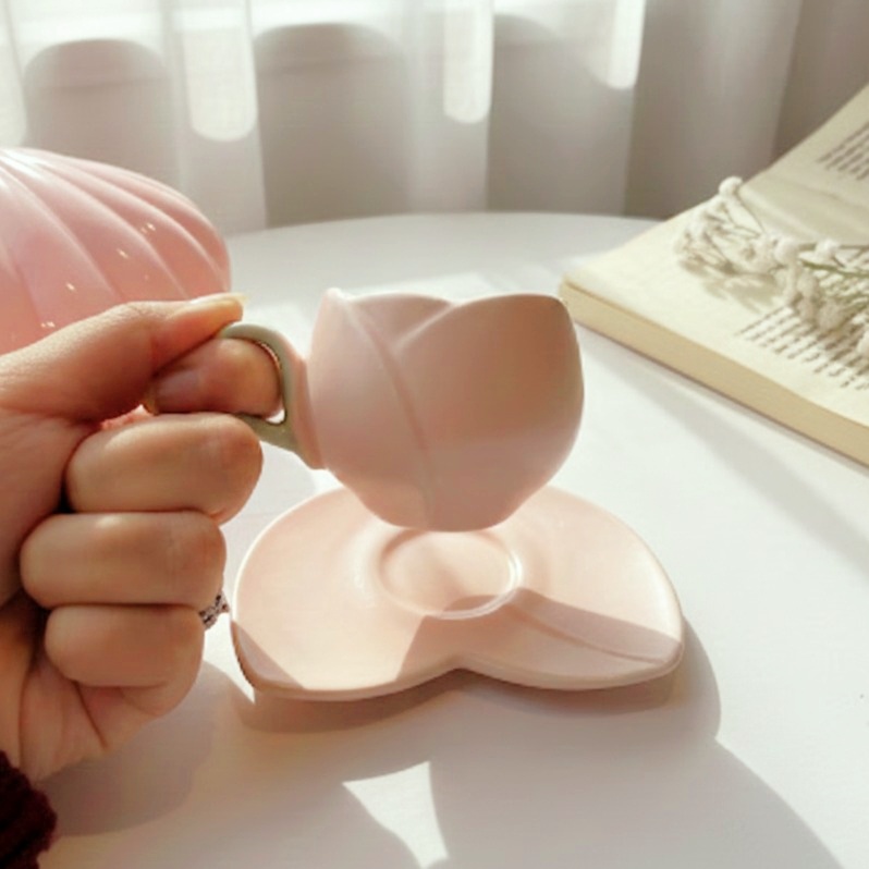 فنجان قهوة على شكل وردة التيوليب بلون بينك رقيق مناسب لقهوتك الصباحية