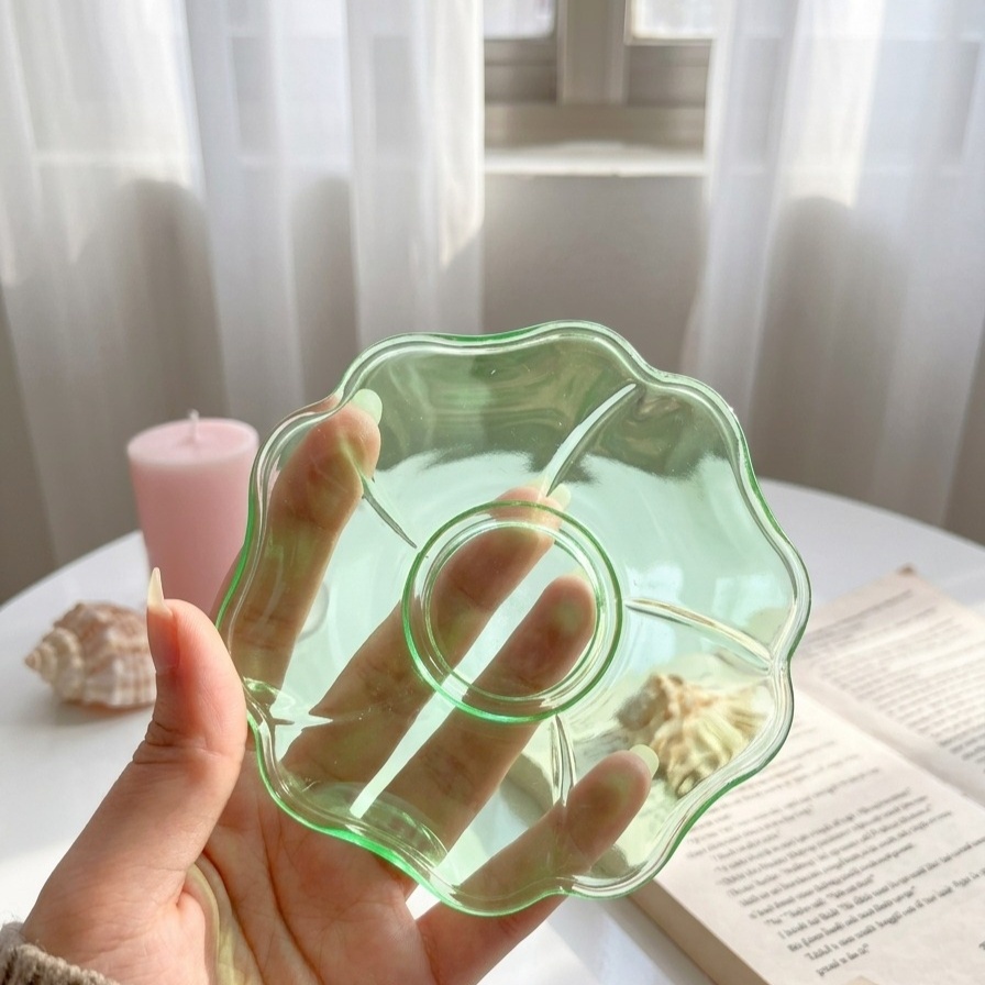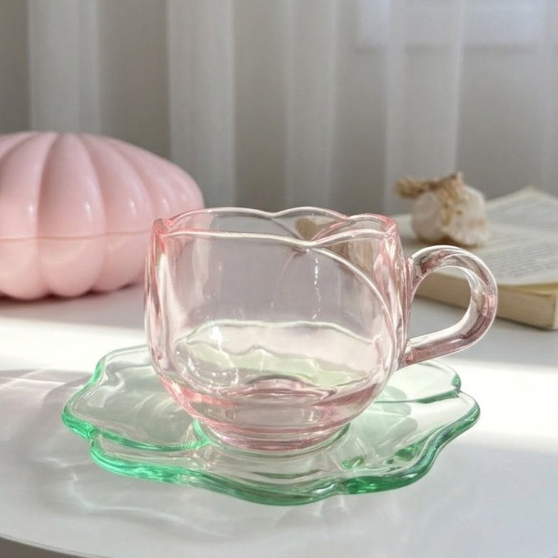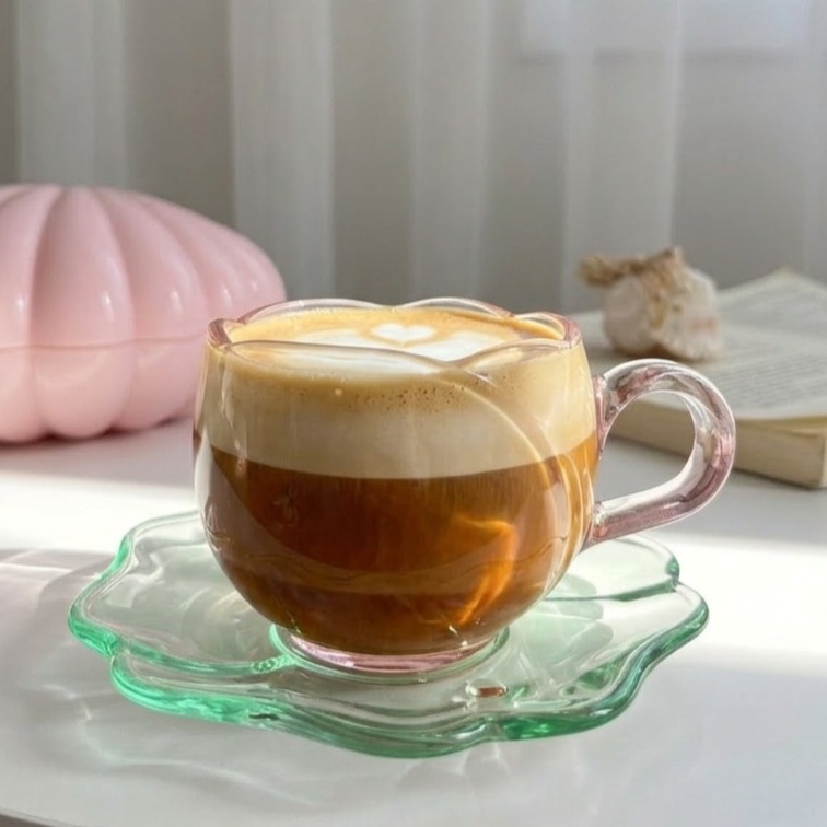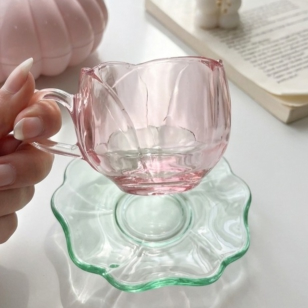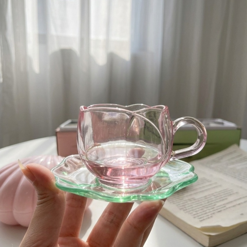 فنجان زجاج شفاف على شكل وردة شكله مبهج وأنيق مناسب للقهوة وهيخليكي تستمتعي بقهوتك بشكل مختلف