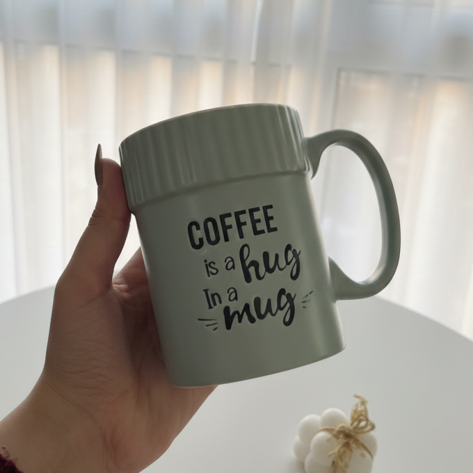 مج بشكل مميز مكتوب عليه quotes لطيفة لمحبي القهوة