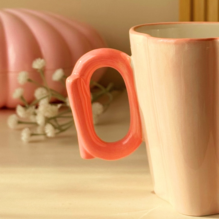مج بورسلين بلون بينك فاتح وشكل وردة هيفتح نفسك في بداية اليوم