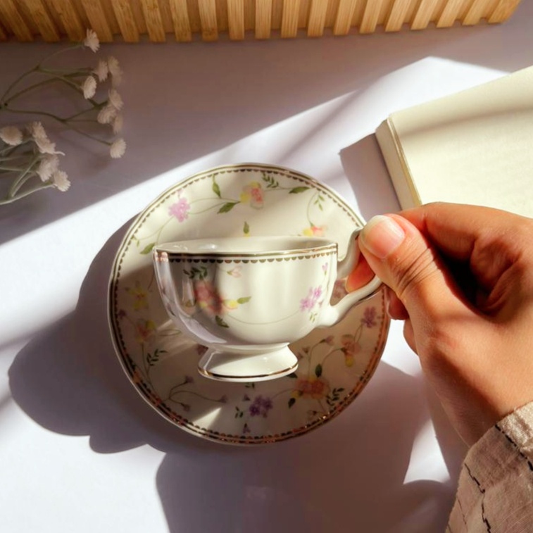 فنجان فلوري مصمم بتفاصيل ورد رقيقة, هيضيف لمسة من الرقة إلى روتينك اليومي مناسب للاستخدام الشخصي أو كهدية مميزة مصنوع من البورسلين