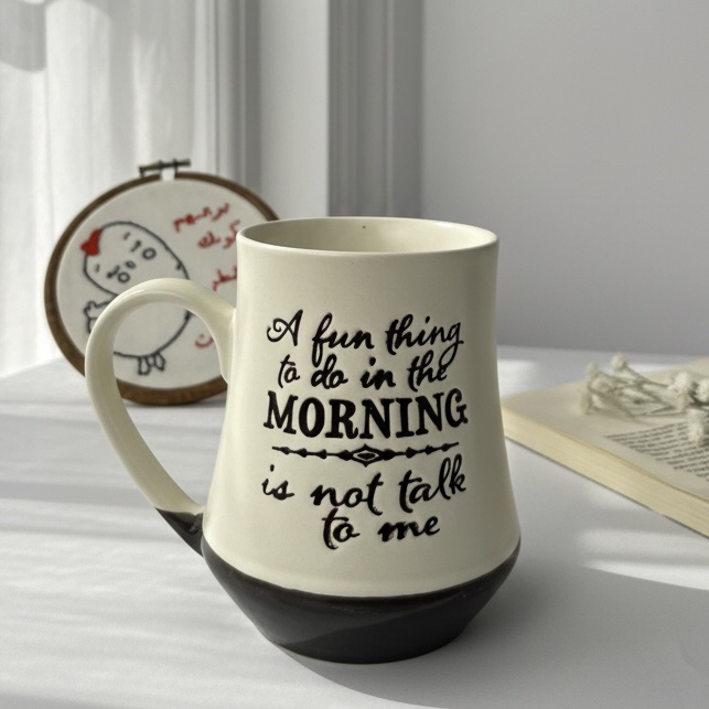 مج شكله مميز ومكتوب عليه جملة A fun thing to do in the morning is not talk to me عشان يعبر عنك وعن مودك