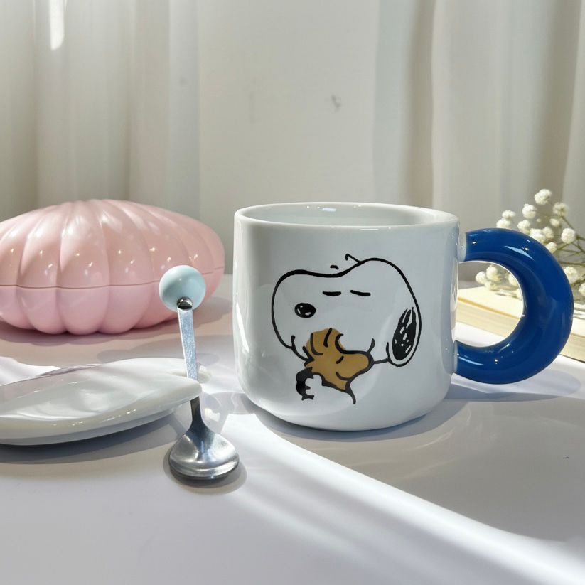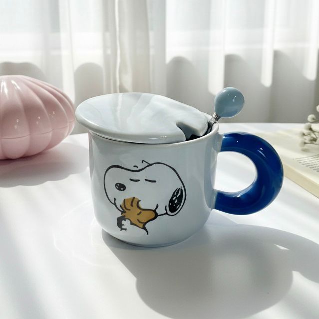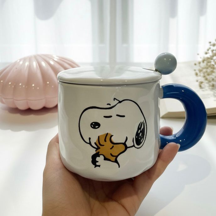 مج لطيف عليه شخصية snoopy ومعاه غطا ومعلقة