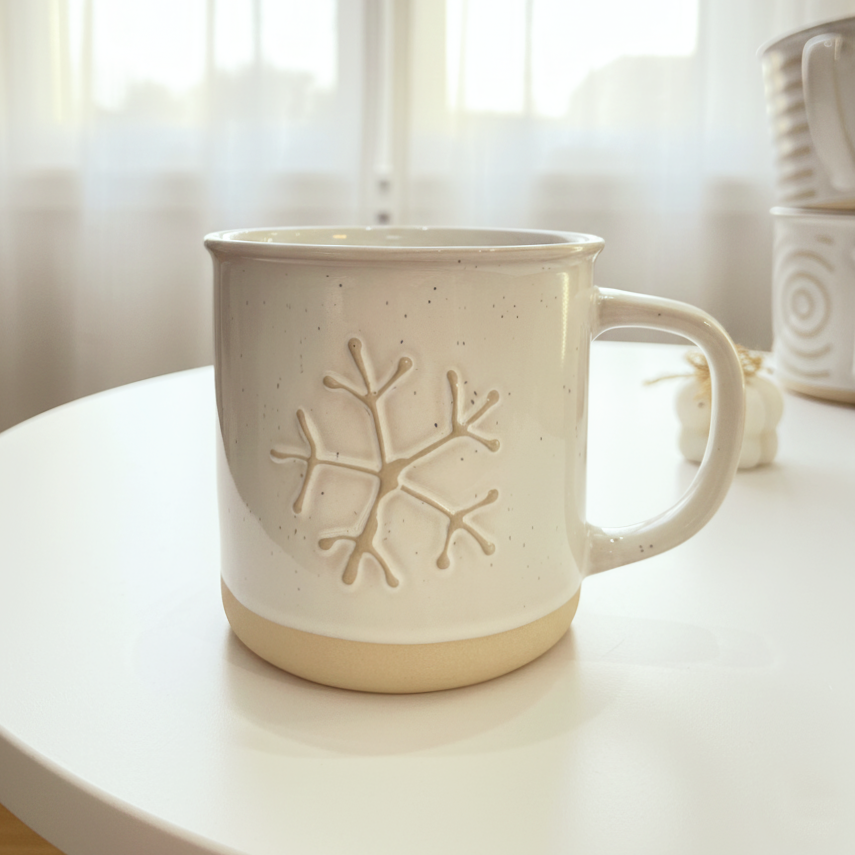 مج snowflake عليه رسمة بلورة الثلج بيرمز للشتا والبرودة اللطيفة